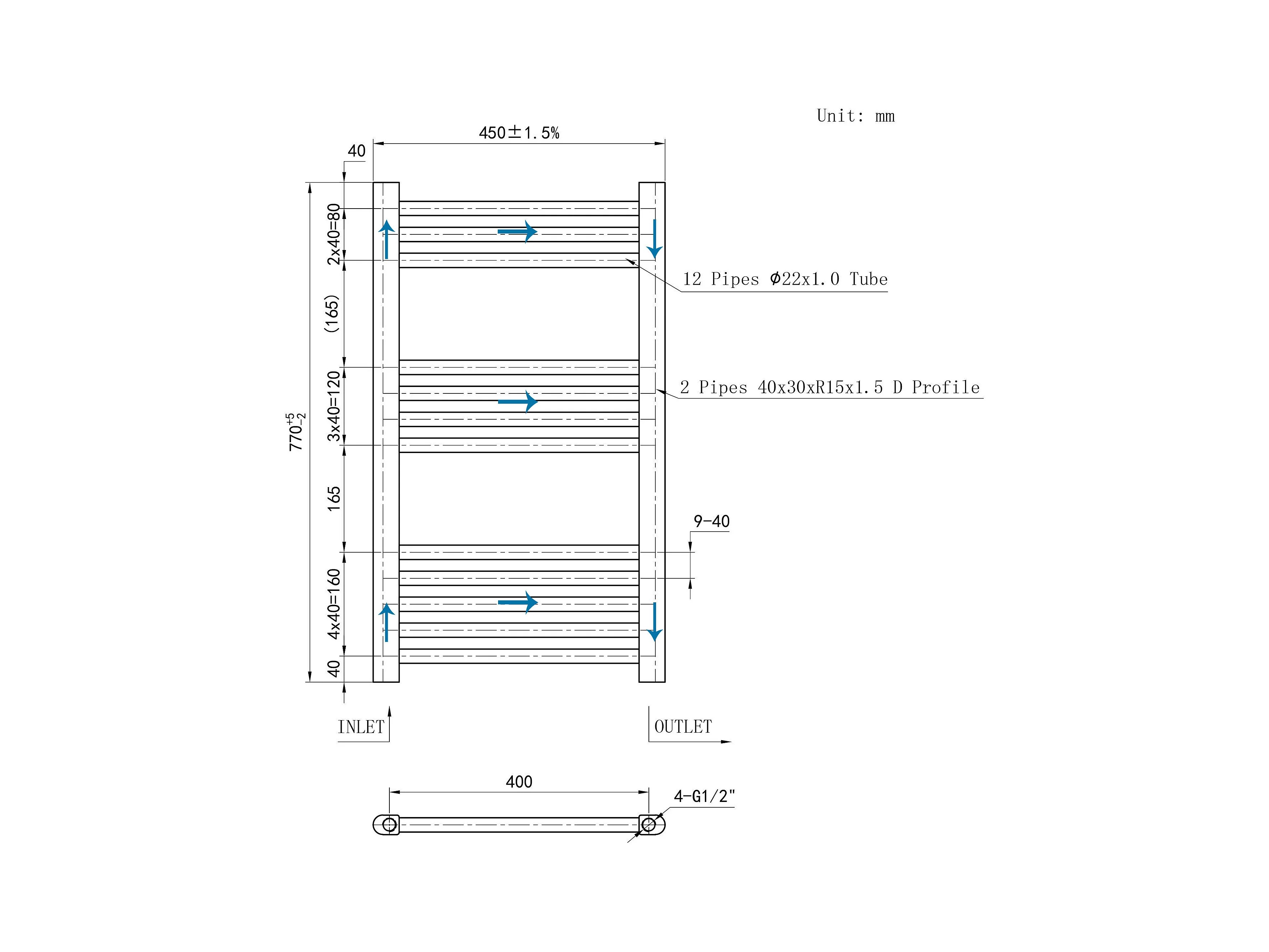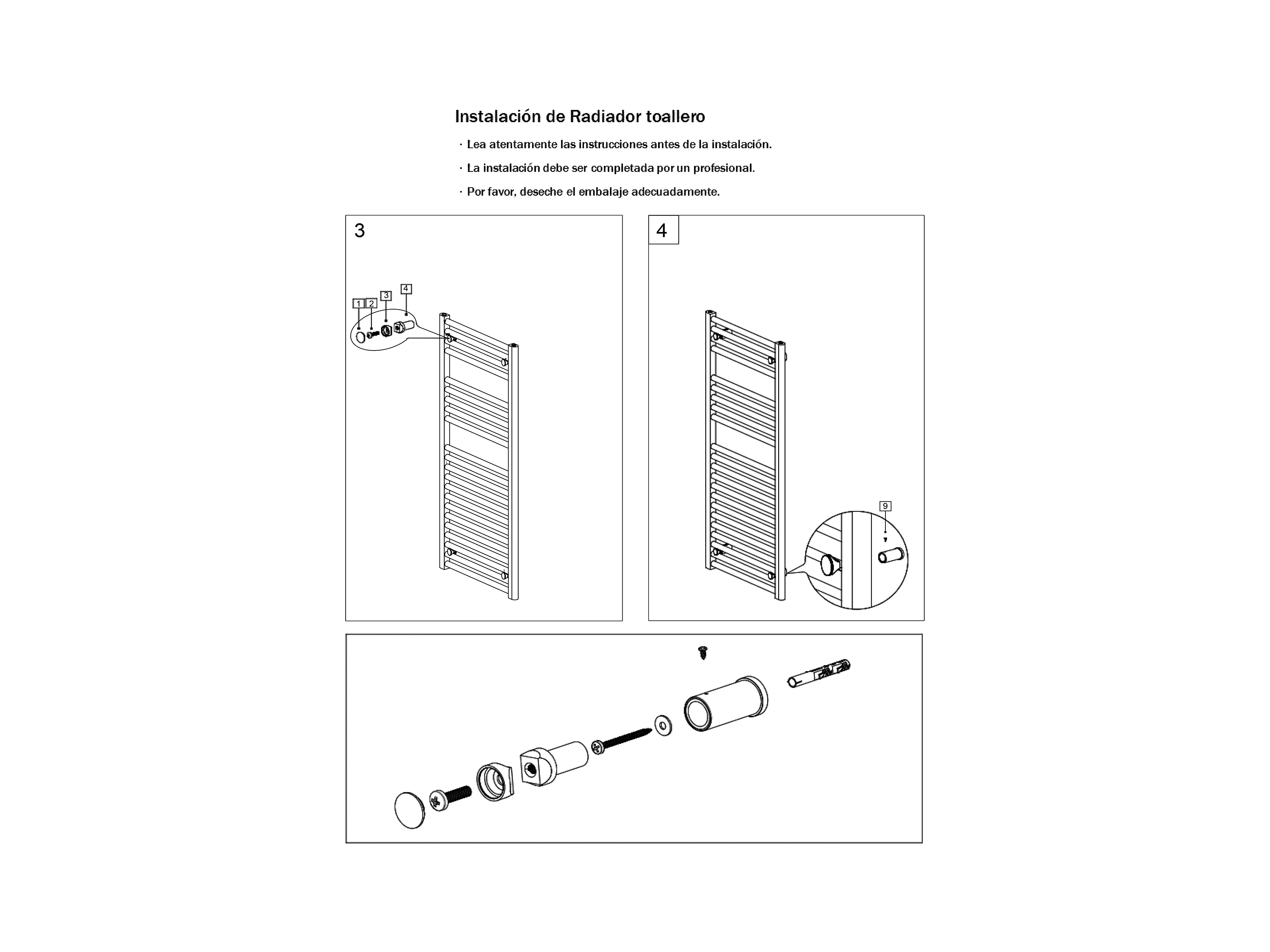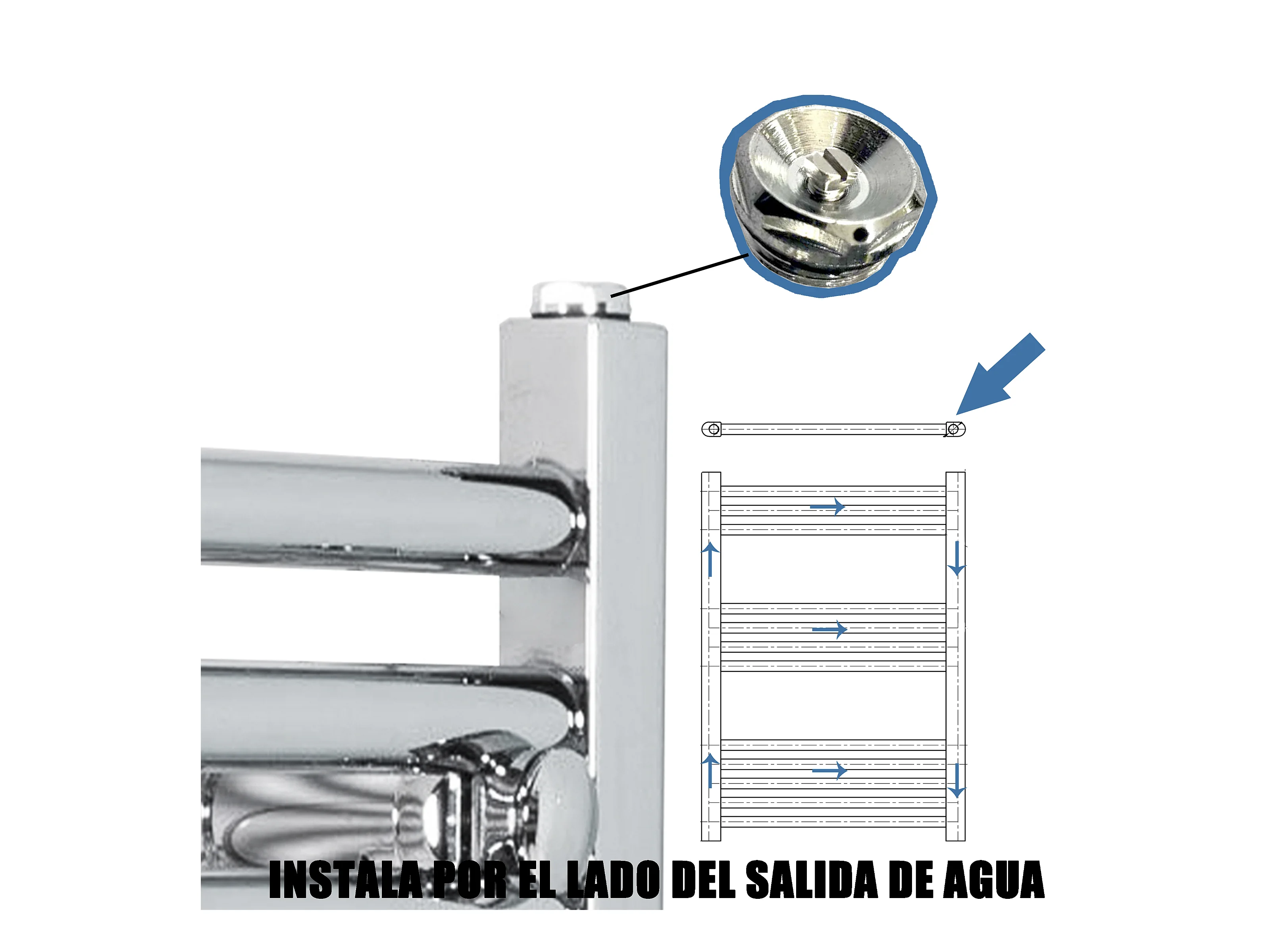 Radiador toallero 77x40cm Cromado 40cm entre ejes en circuito de agua caliente