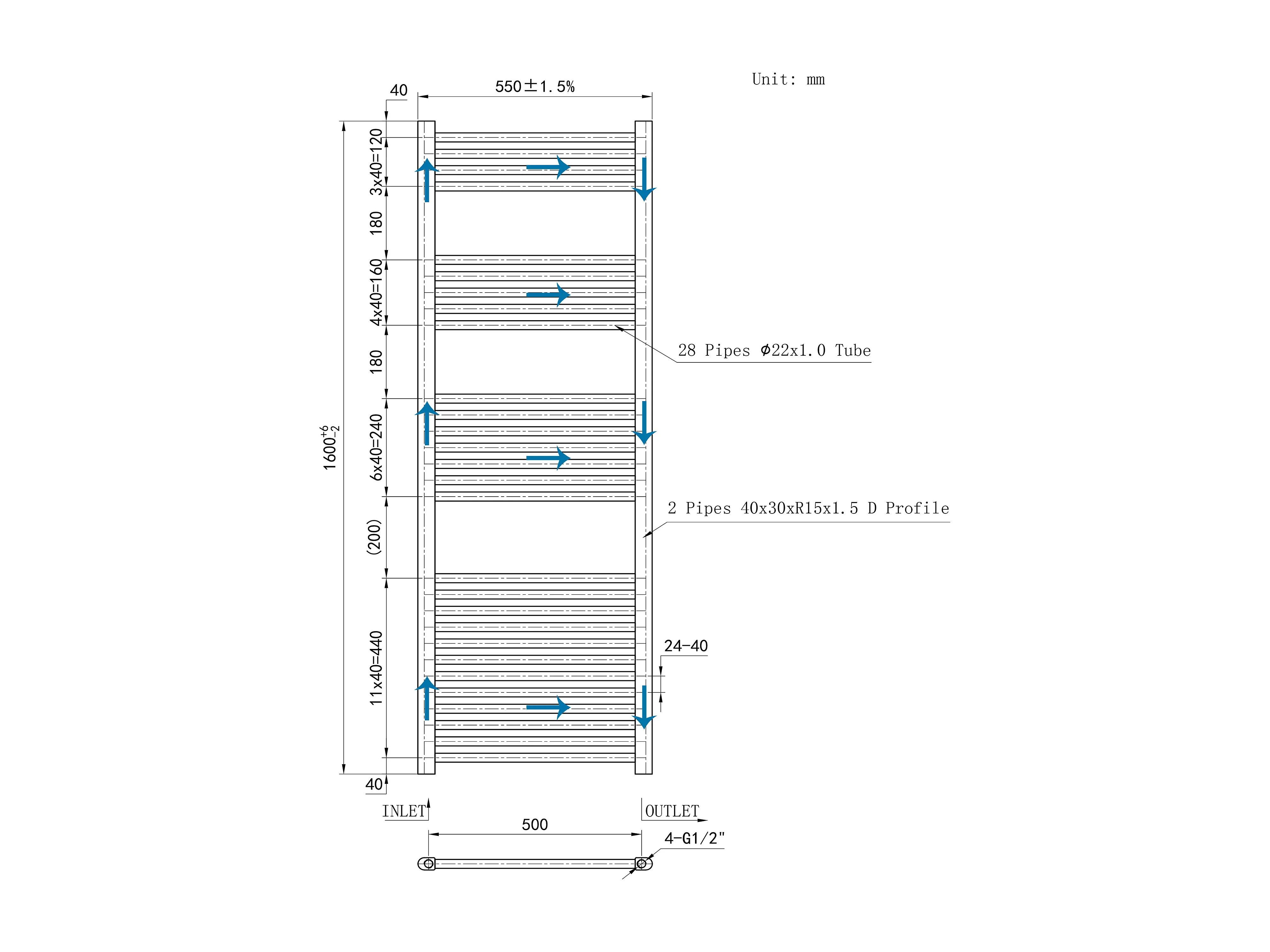 Radiador toallero de alta salida de calor blanco calefacción 160x55cm