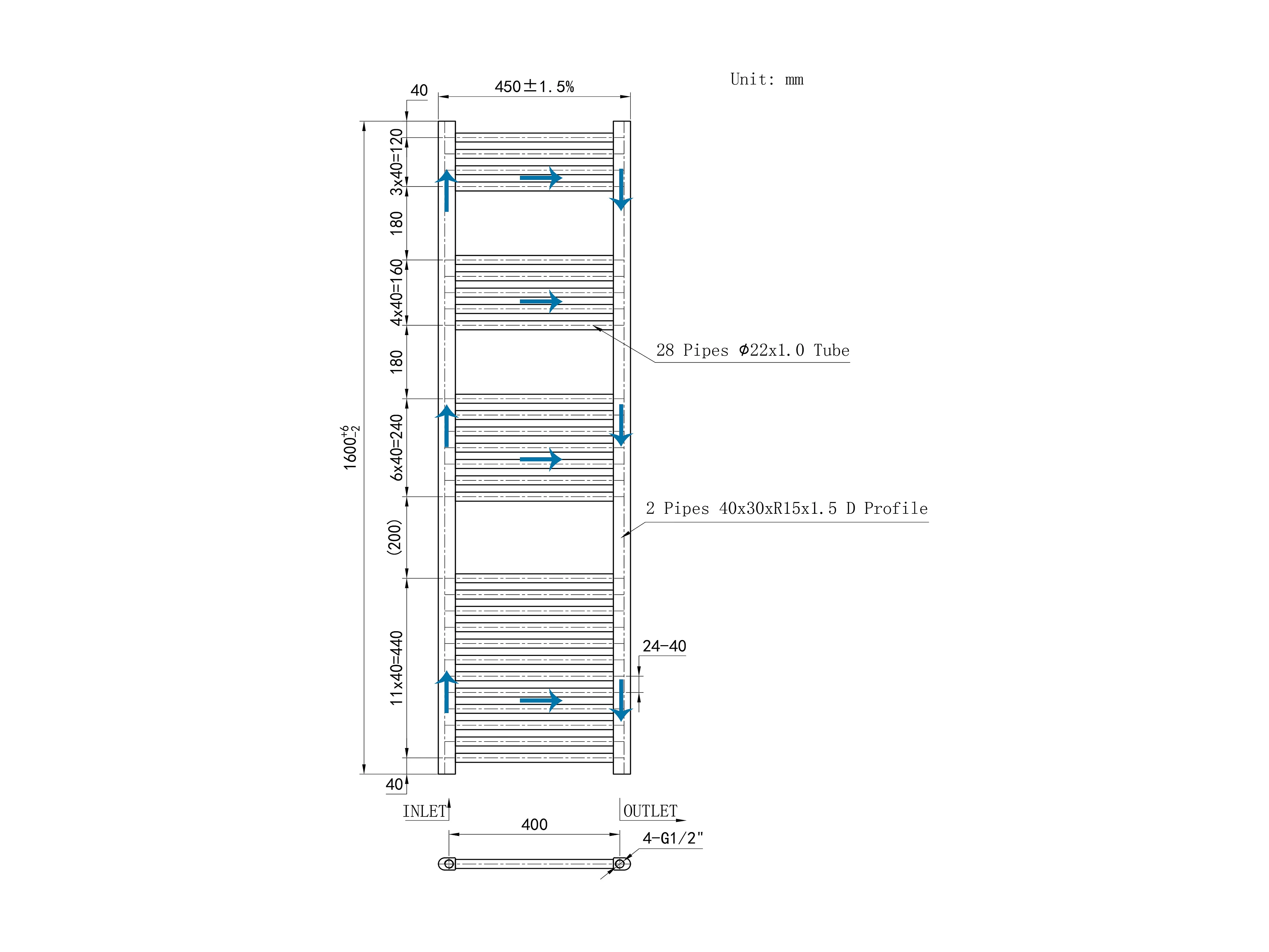 Radiador toallero de alta salida de calor cromado calefacción 160x45cm