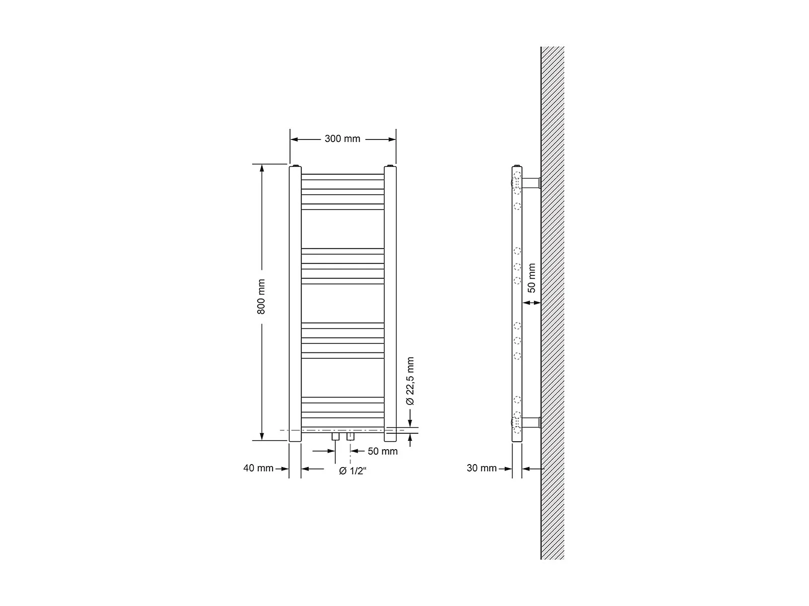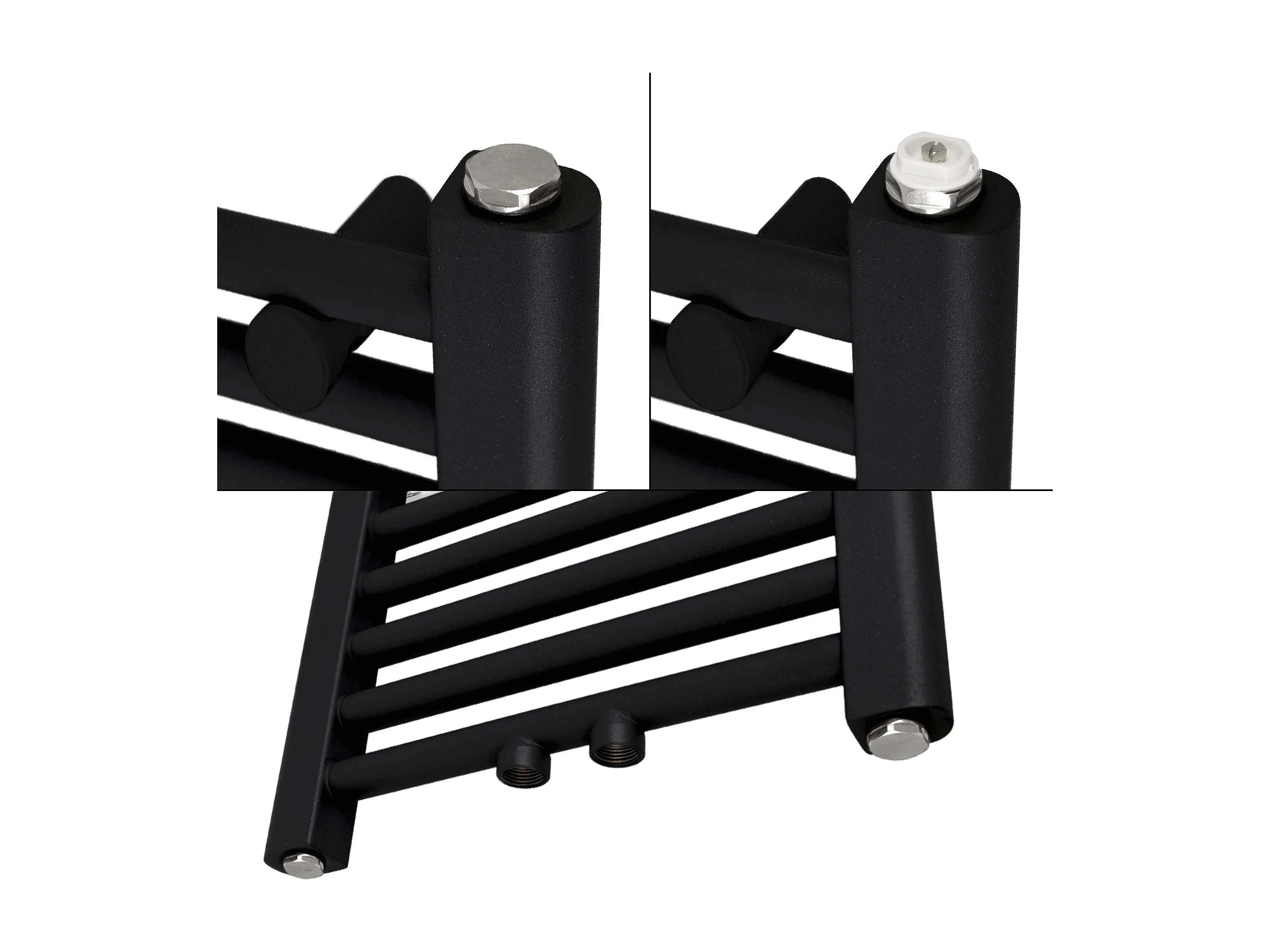 Radiador toallero de baño 300x800mm calefactor recto negro mate conexión central