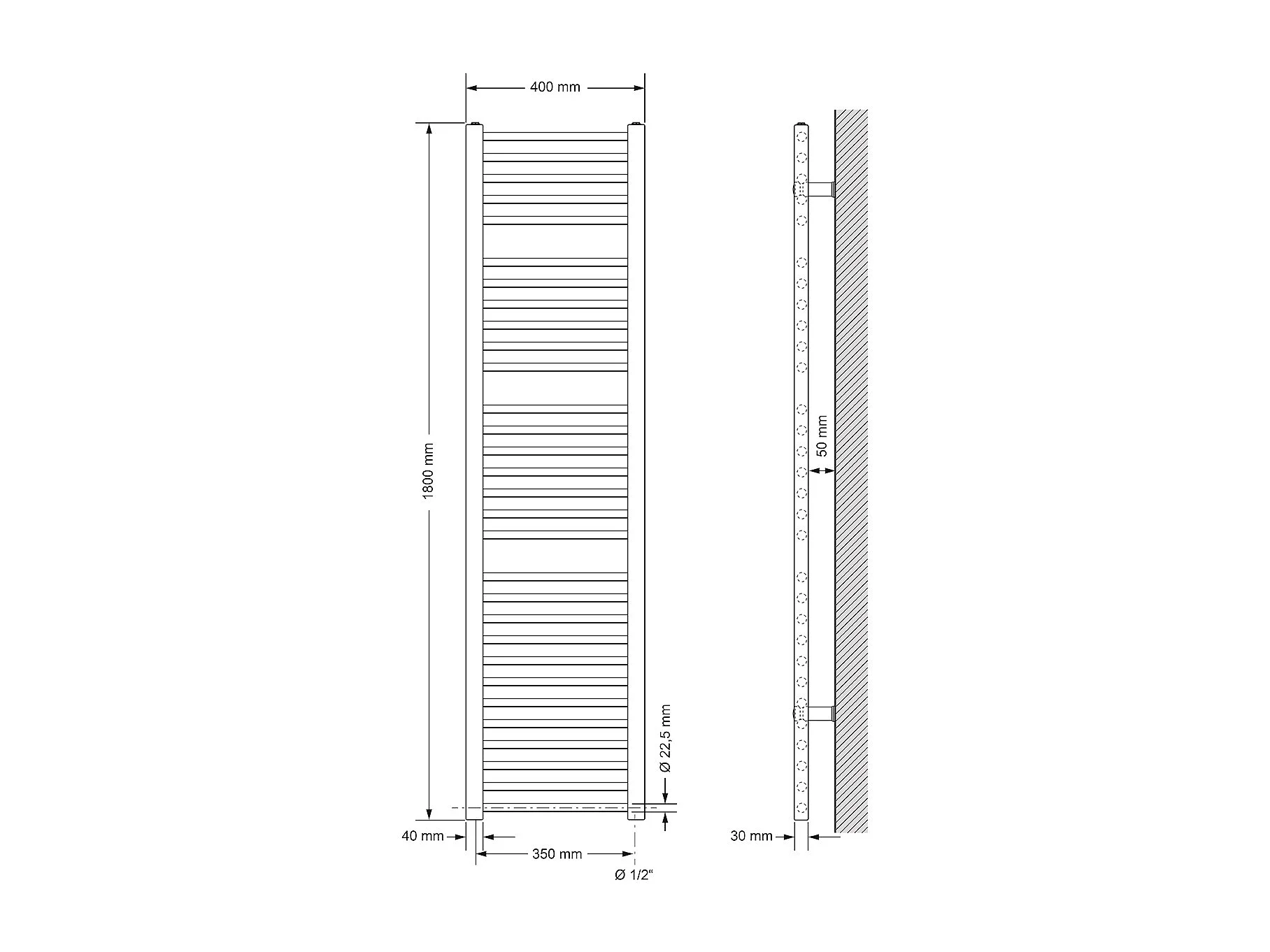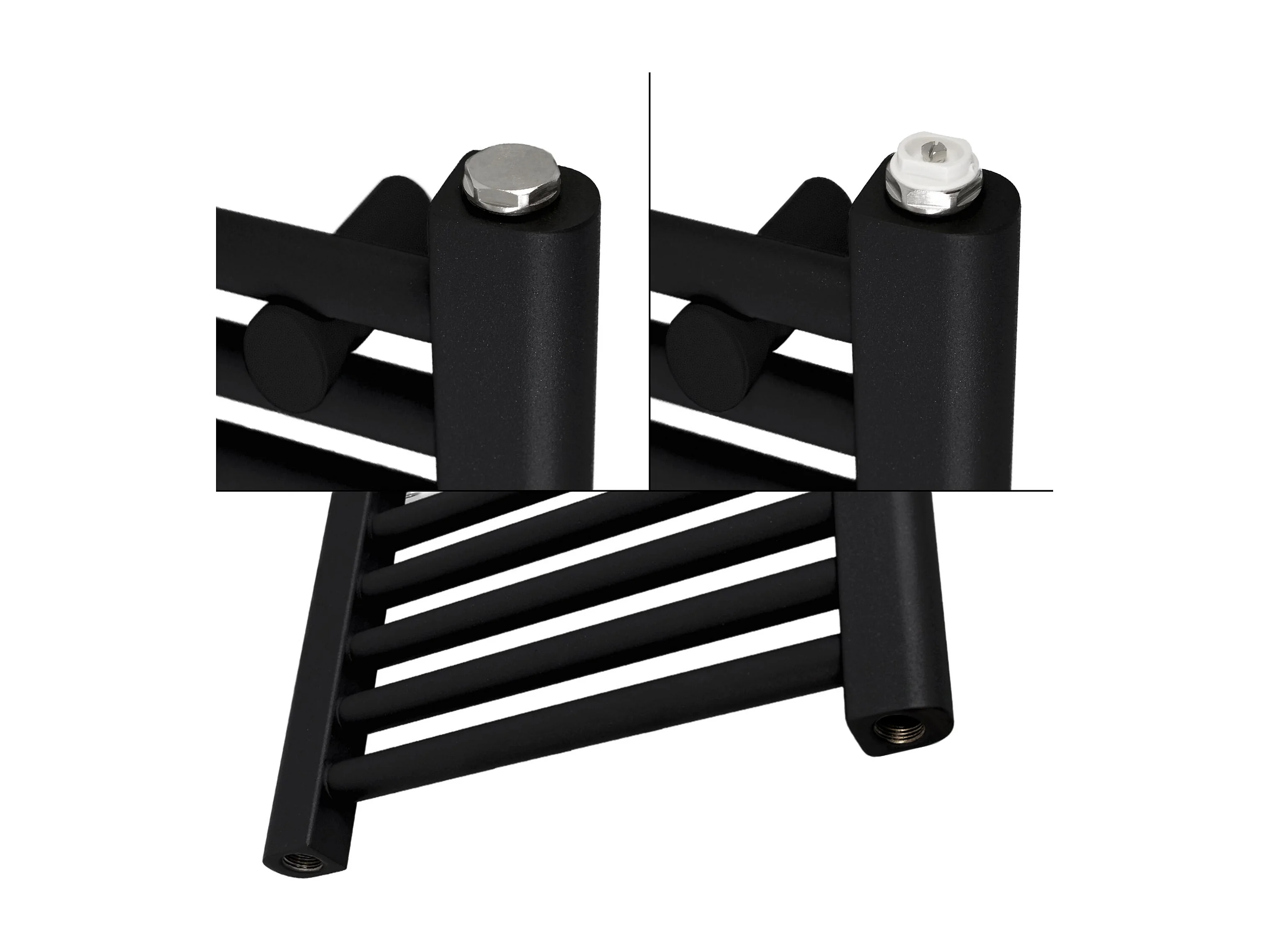 Radiador toallero de baño 40x180cm calefactor recto negro mate, conexión lateral