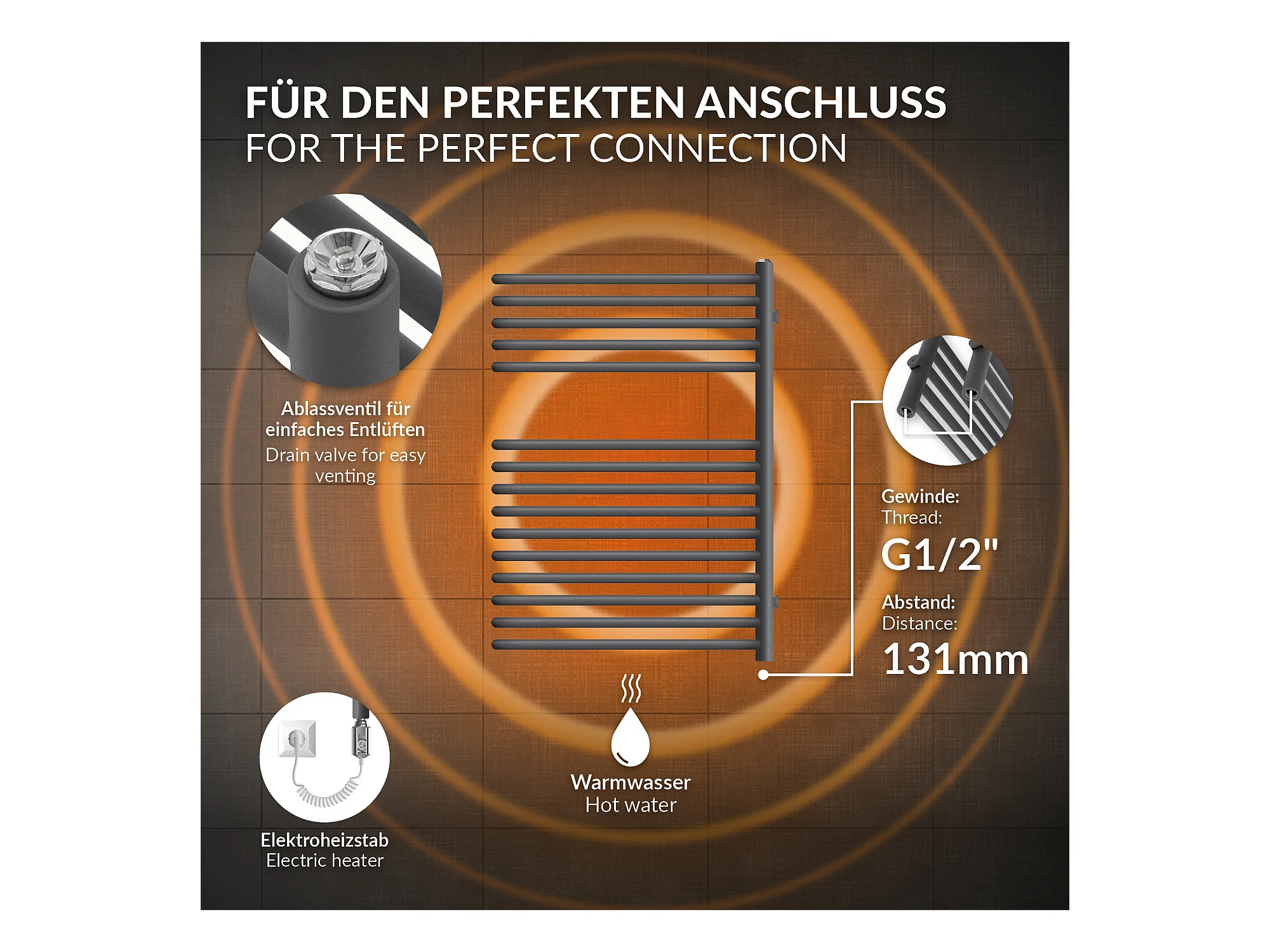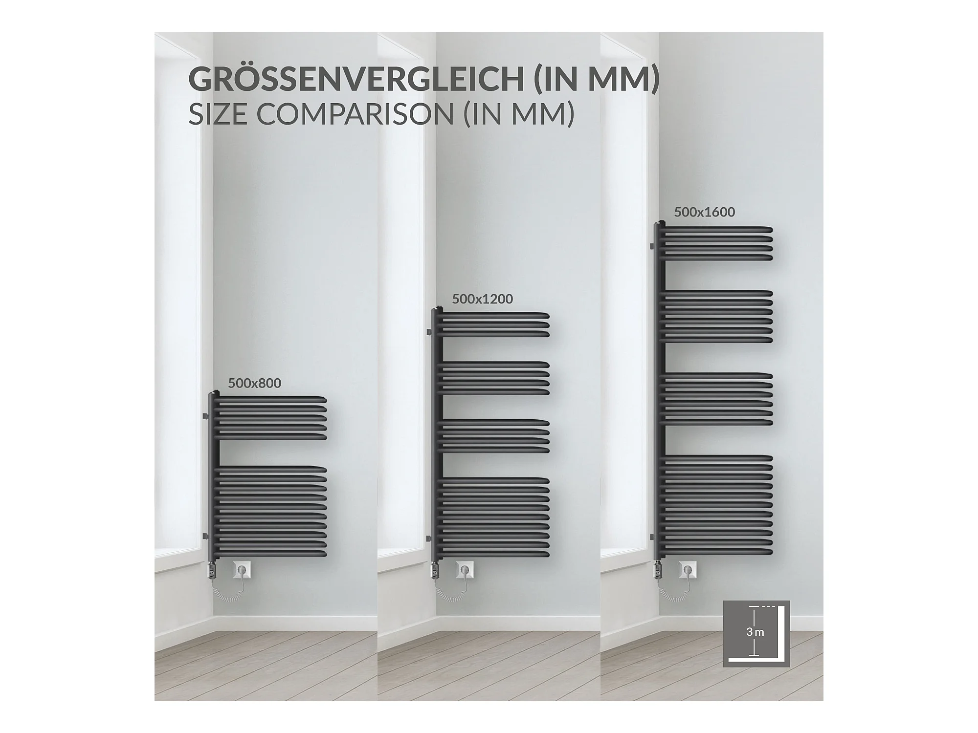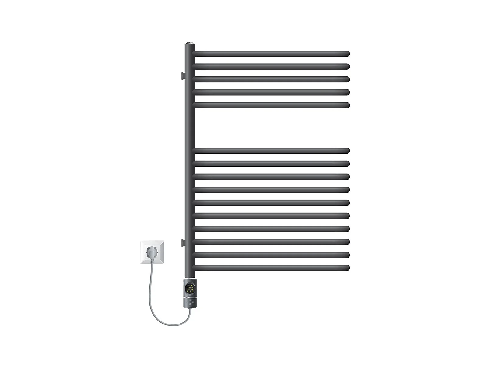 Calentador Eléctrico de Baño Sahara 500x800 mm Antracita Conexión Lateral Curva y Barra Calentadora 300W Termostato y Pantalla Digital