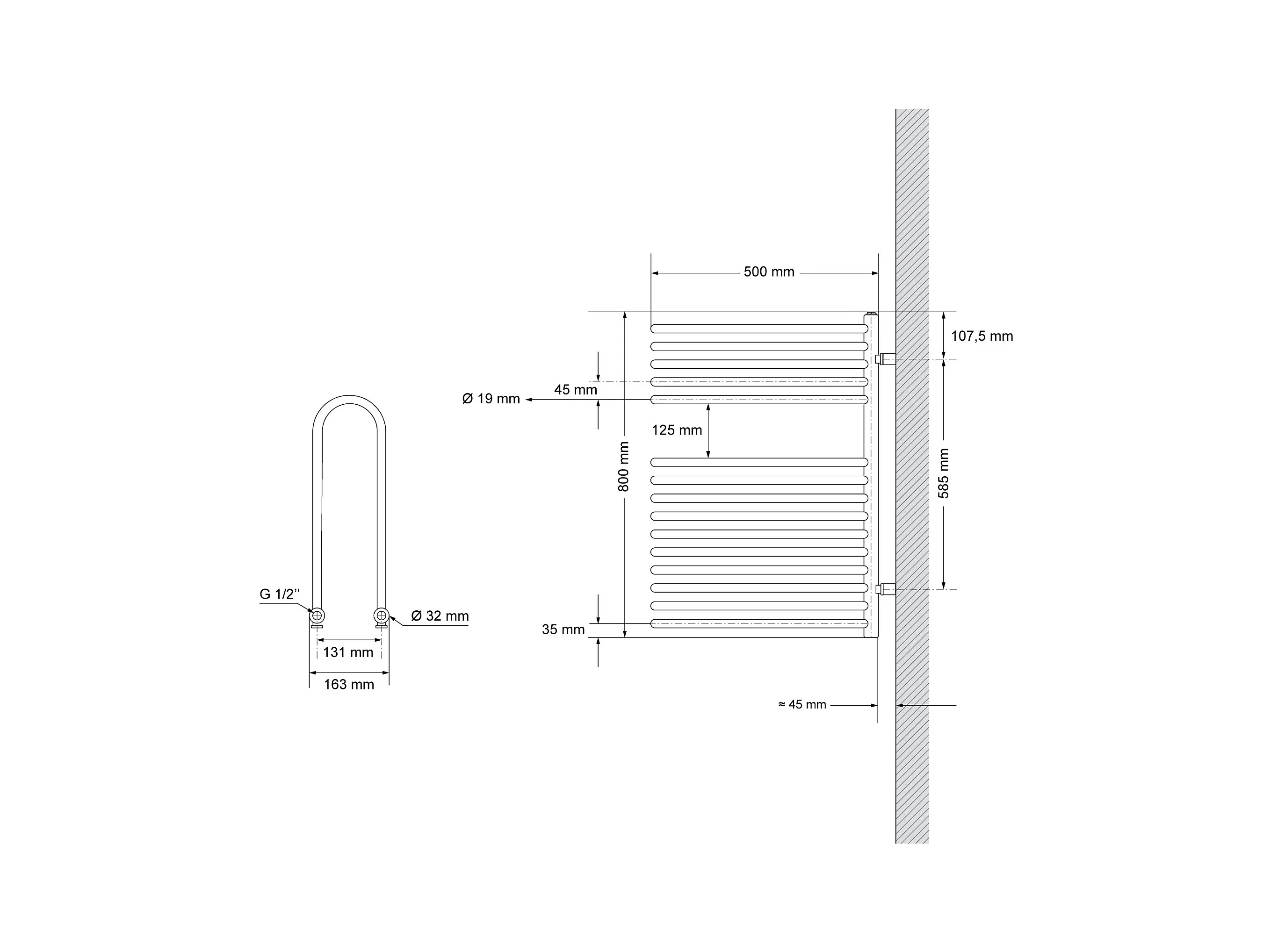 Radiador toallero de pared antracita 500x800 mm con resistencia de inmersión 600 W