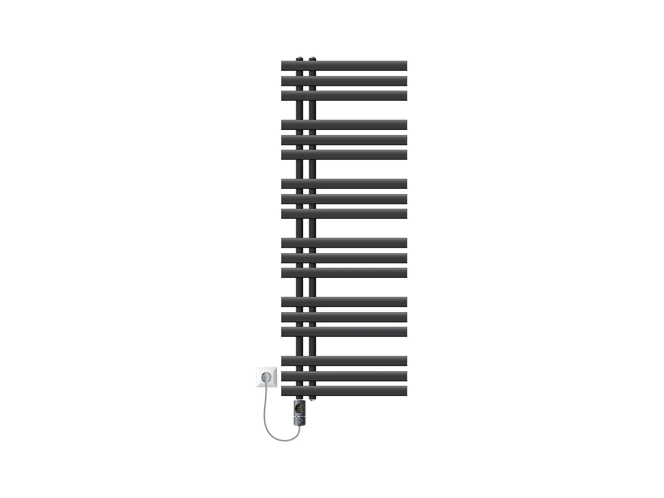 Radiador toallero eléctrico antracita 500x1400 mm con elemento calefactor 1200W