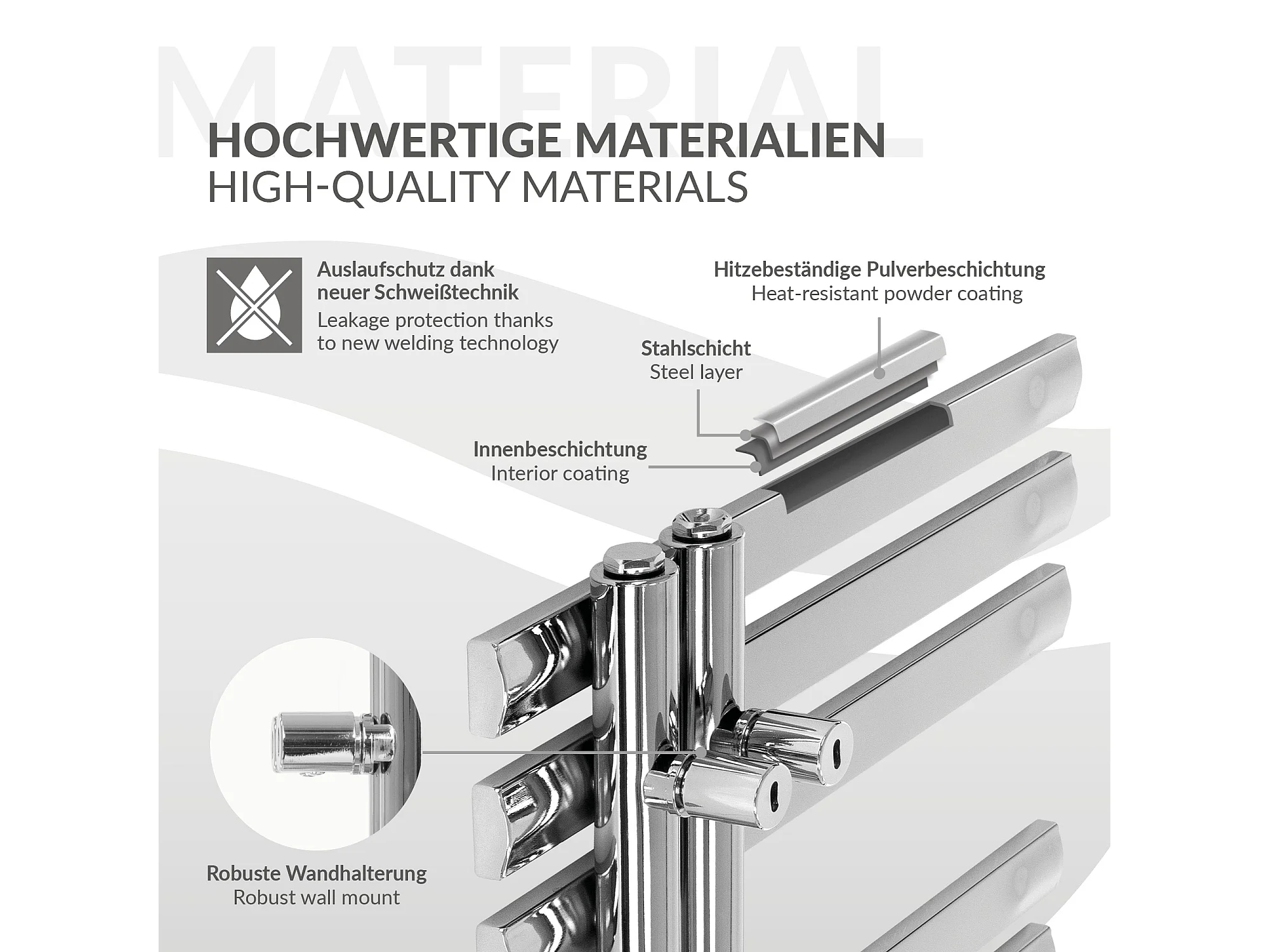 Radiador toallero eléctrico cromado 500 x 1400 mm con elemento calefactor 1200W