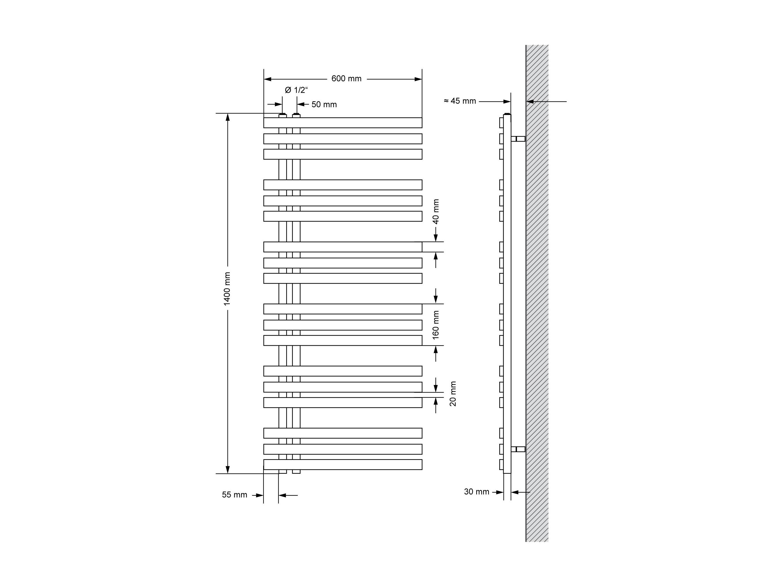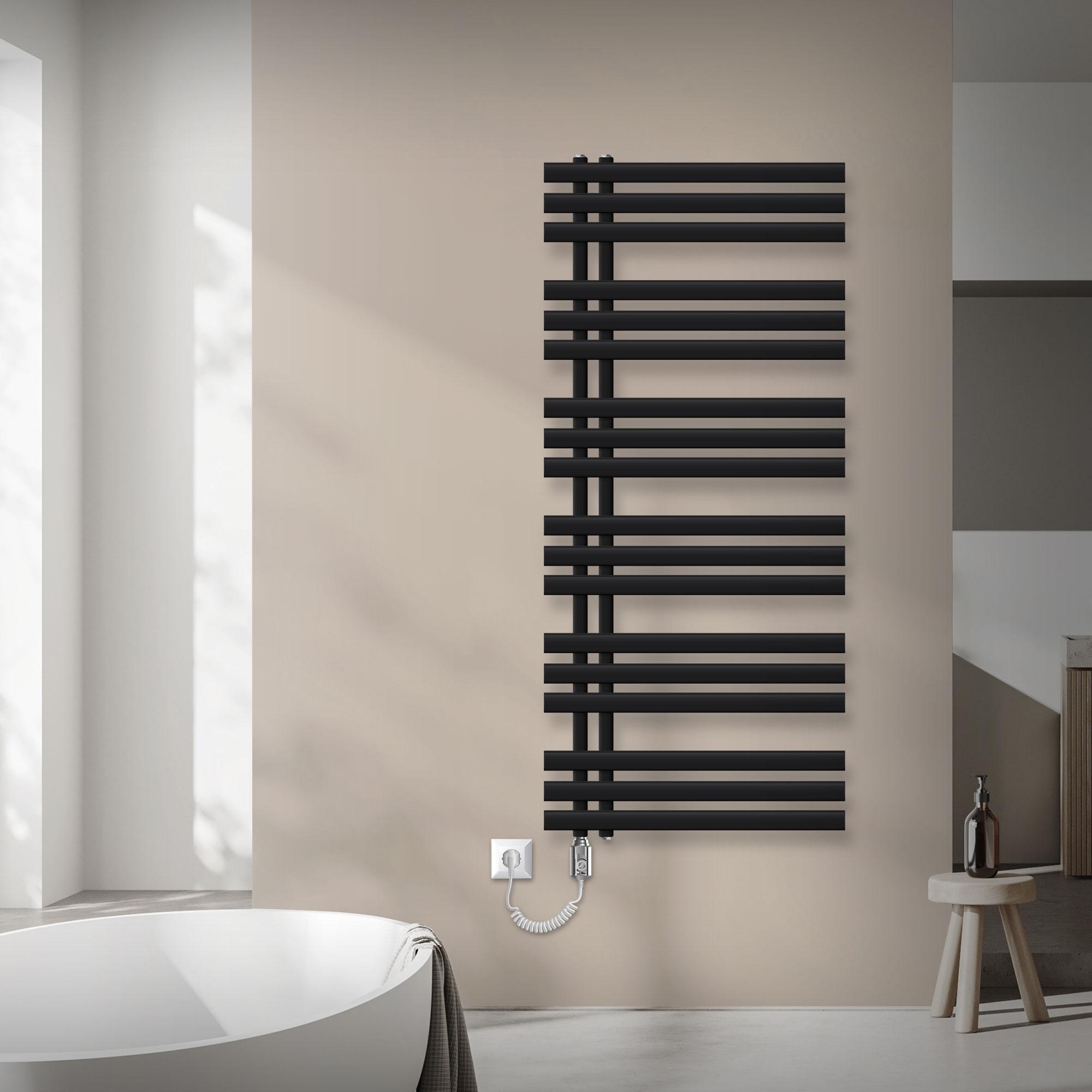 Radiador toallero eléctrico negro mate 600 x 1400mm con elemento calefactor 900W