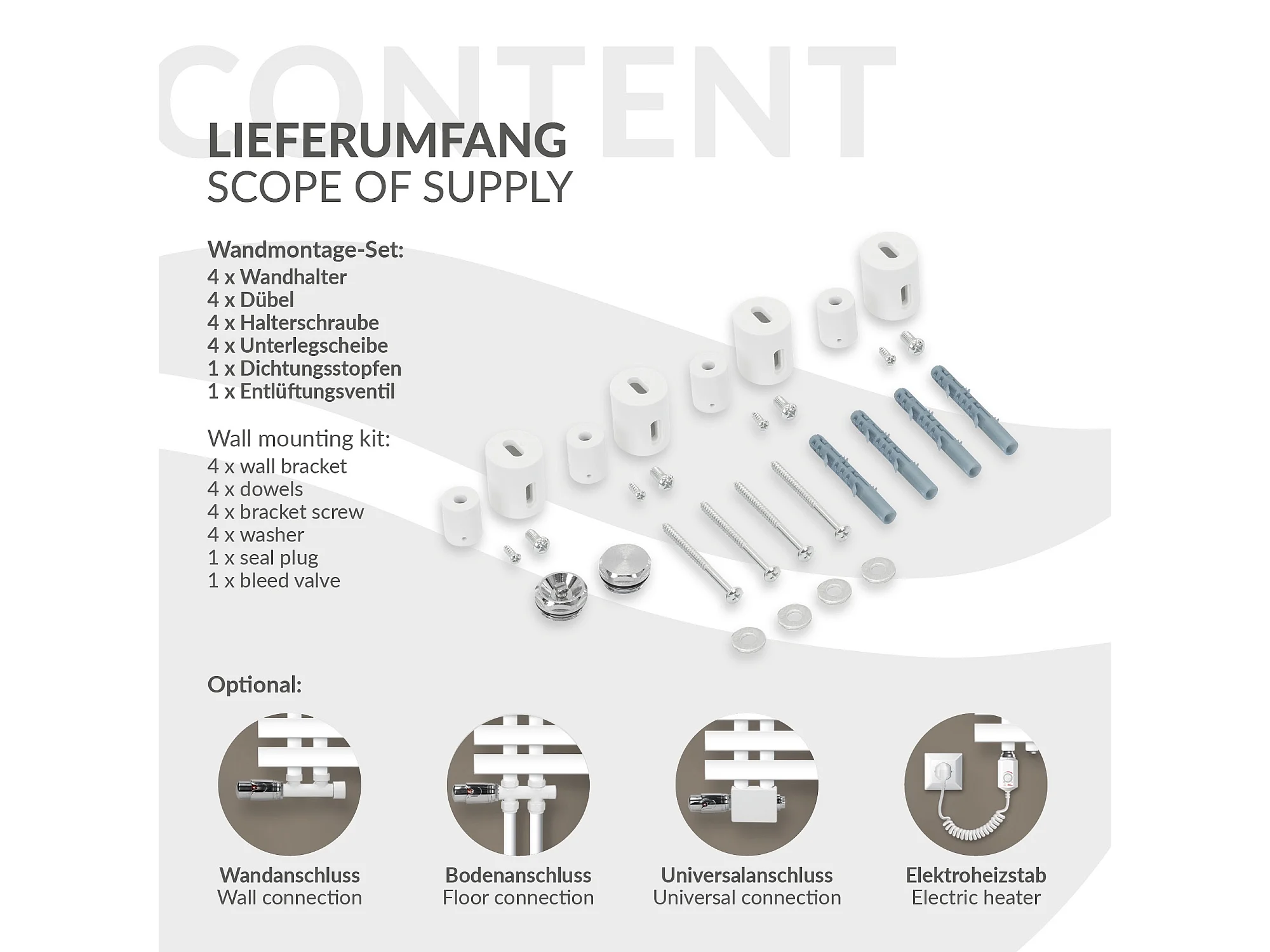 Radiador de baño de Iron EM 600x1400mm blanco Conexión central inferior con embellecedor
