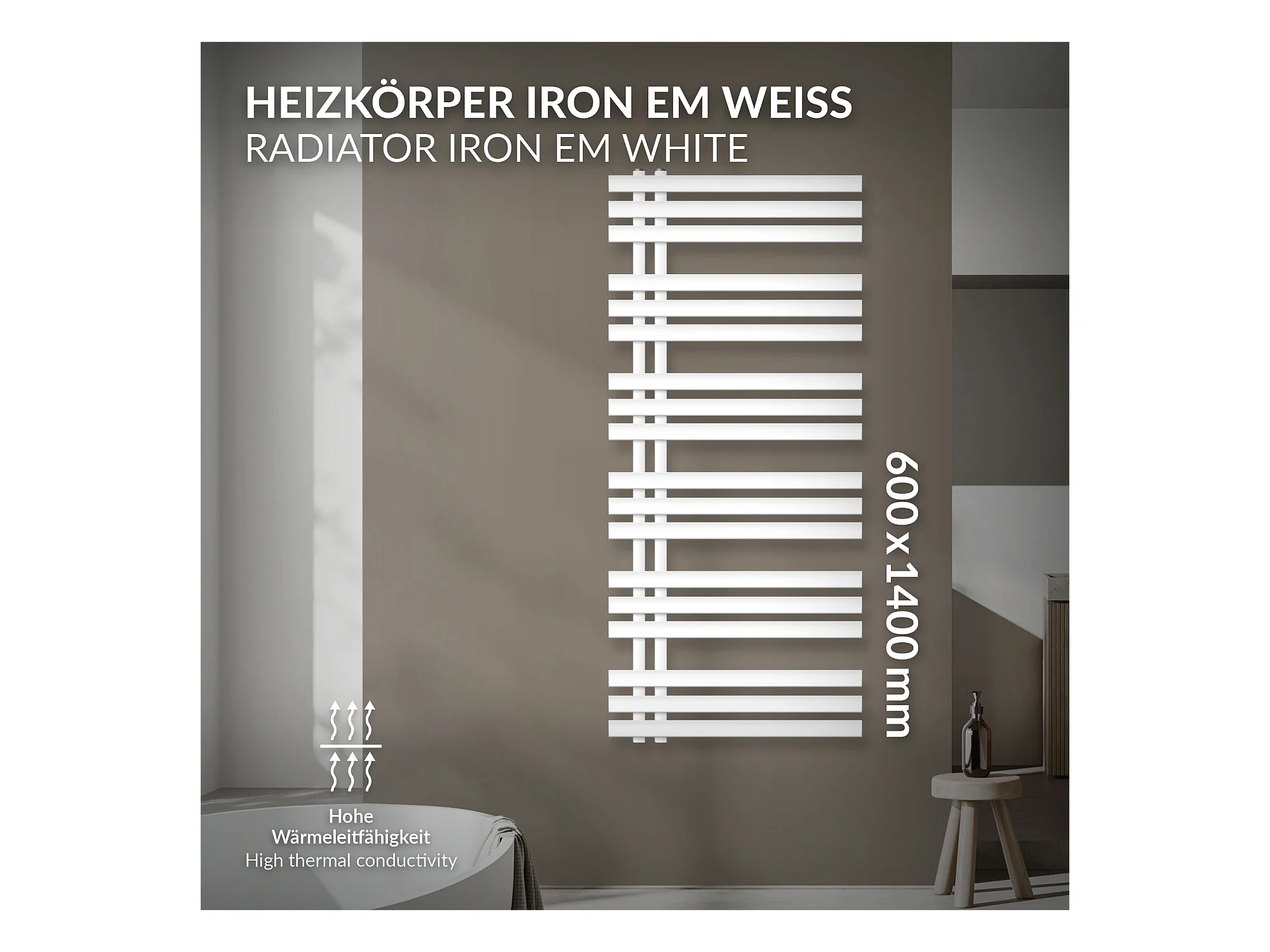Radiador toallero Iron EM Design, 600 x 1400 mm, blanco, radiador de baño