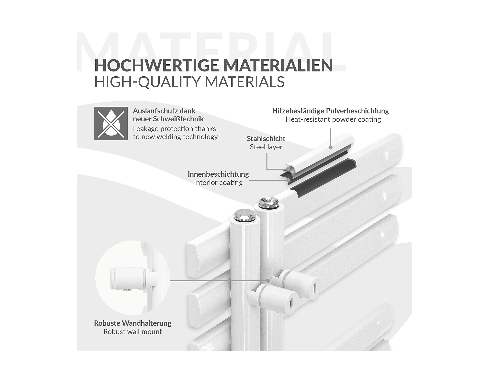 Radiador toallero Iron EM Design, 500 x 1400 mm, blanco, radiador de baño