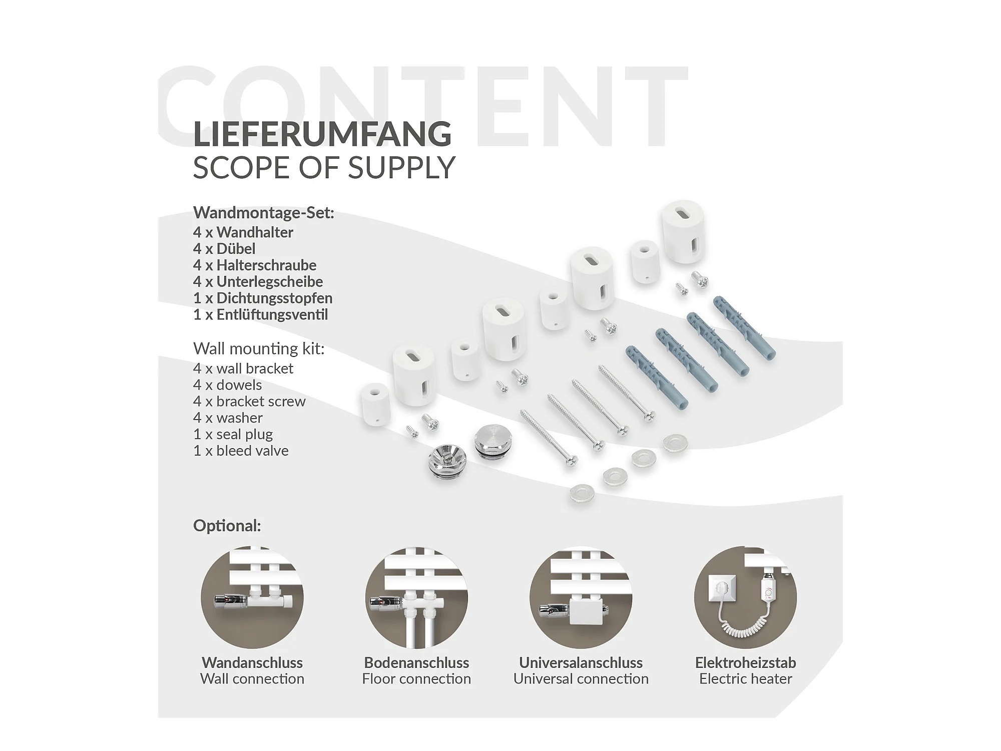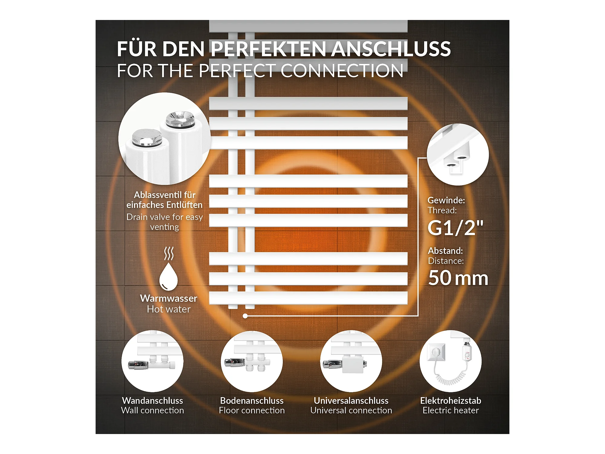Radiador de baño de Iron EM 600x1400mm blanco Conexión central inferior con embellecedor