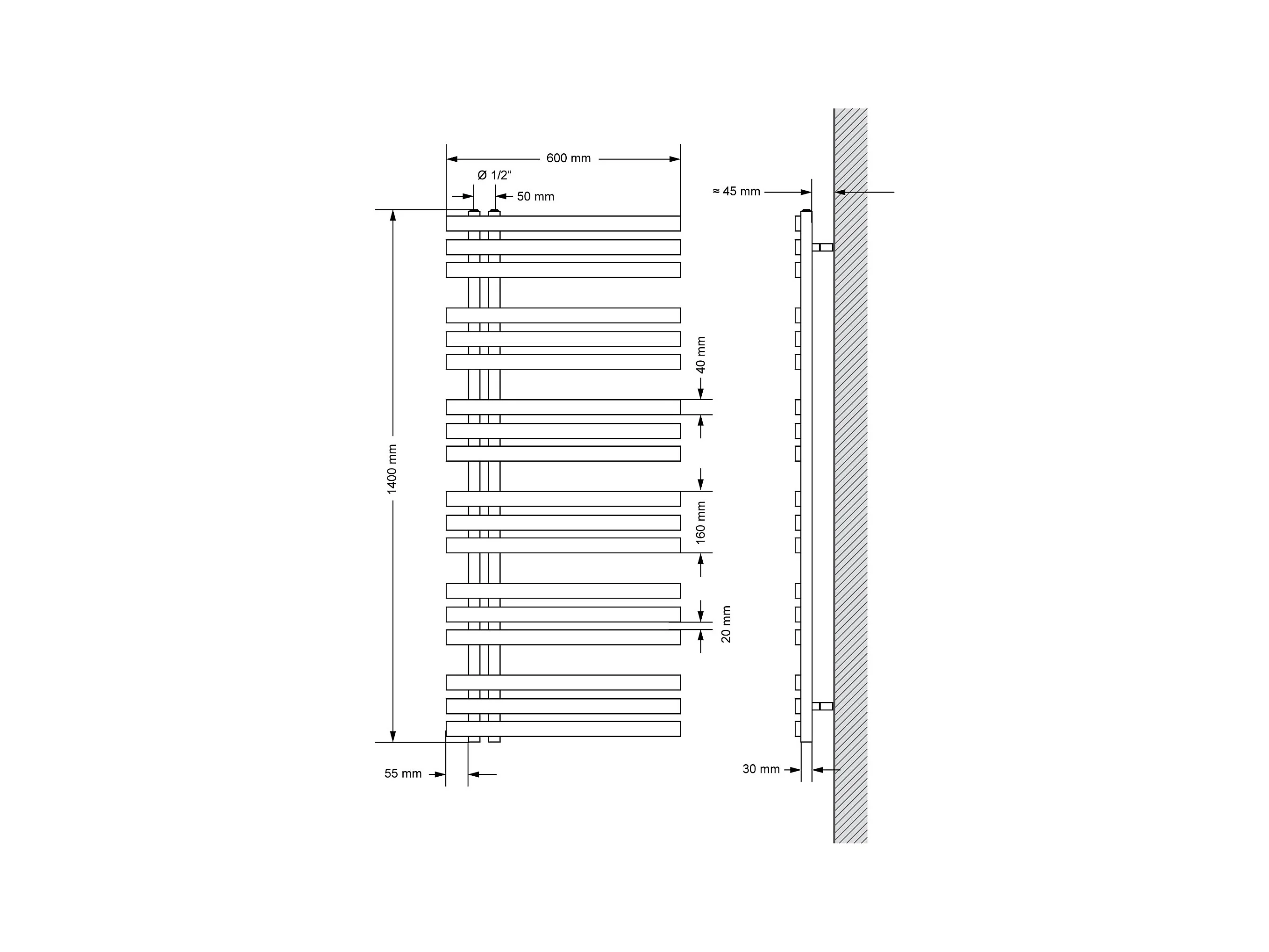Radiador de baño de diseño Iron EM 500x1400 mm blanco LuxeBath