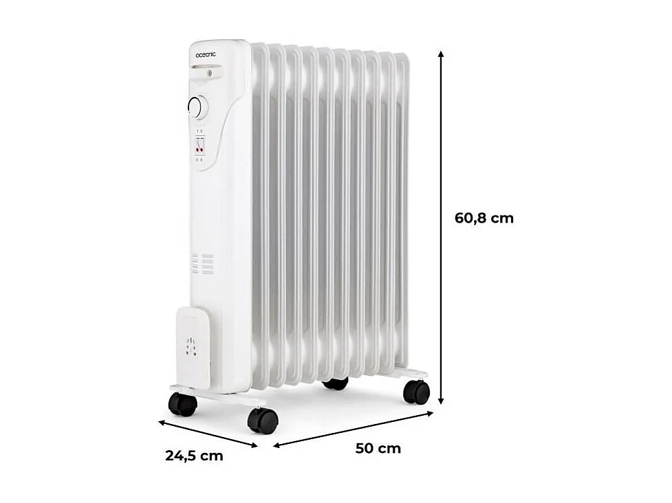Radiador eléctrico de aceite 2500W OCEANIC - 3 potencias - 11 elementos - Blanco - Móvil