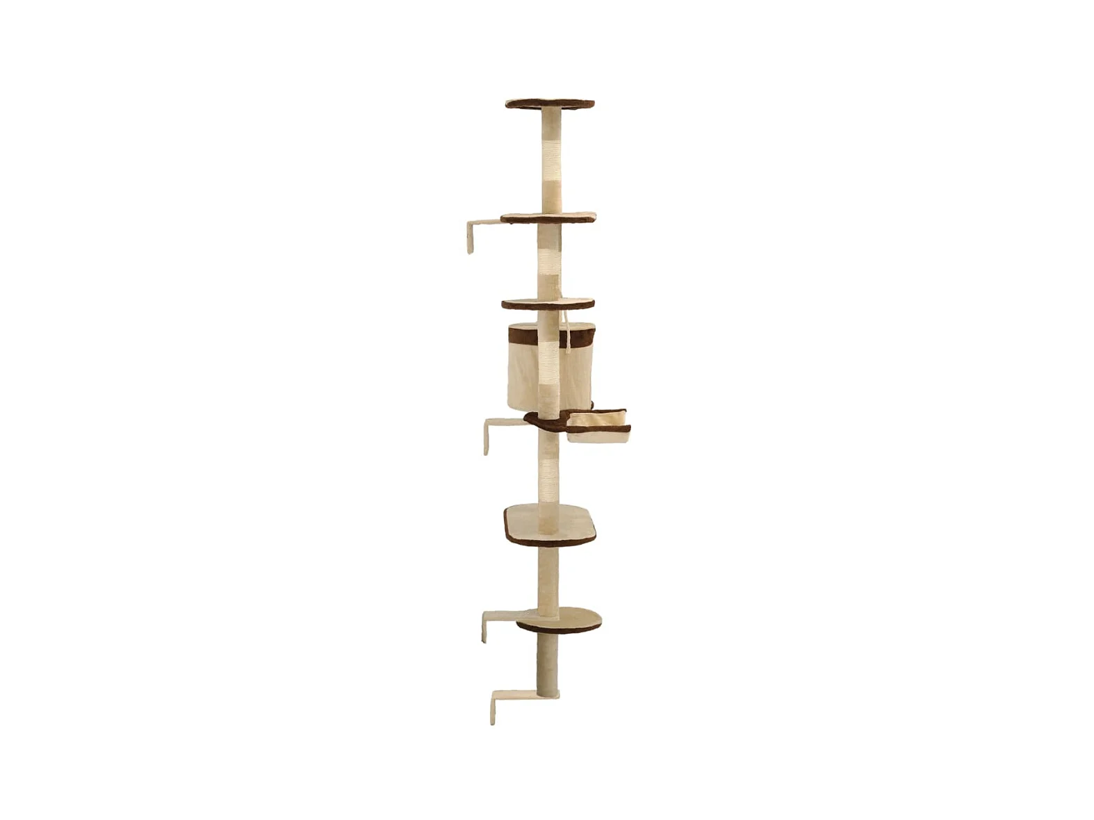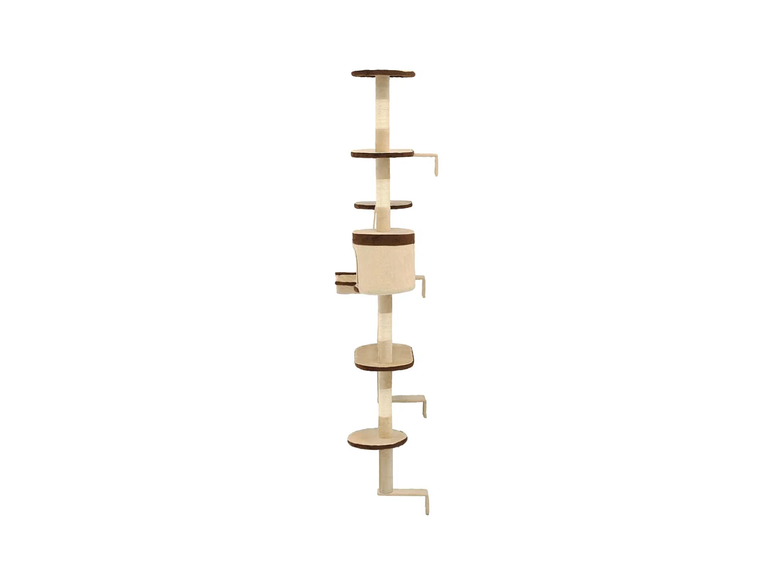 Rascador de gato de pared postes de sisal 194 cm beige y marrón