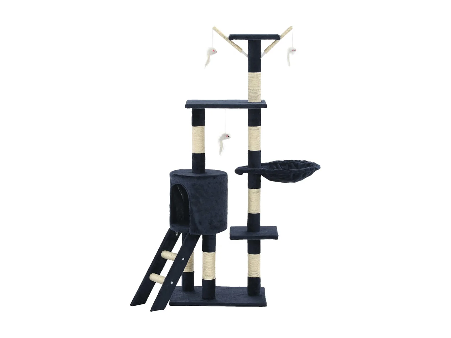 Rascador para gatos con poste de sisal 138 cm azul oscuro