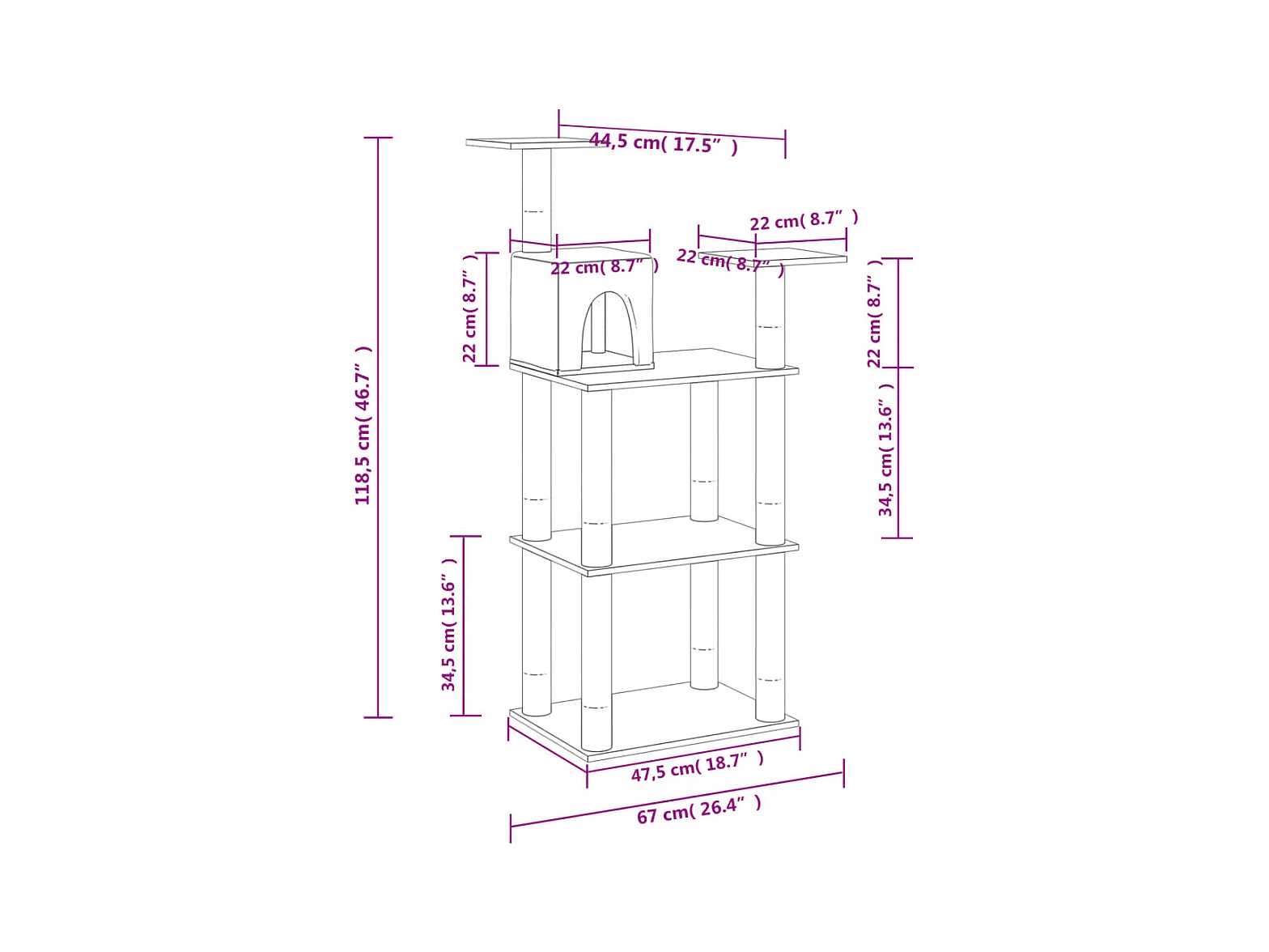 Rascador para gatos con postes de sisal color crema 118,5 cm