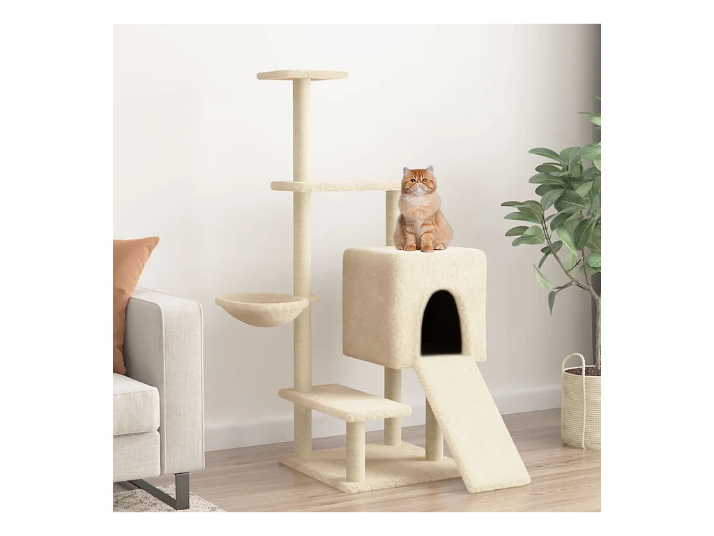Eirisse Rascador para gatos con postes de sisal color crema 107,5 cm