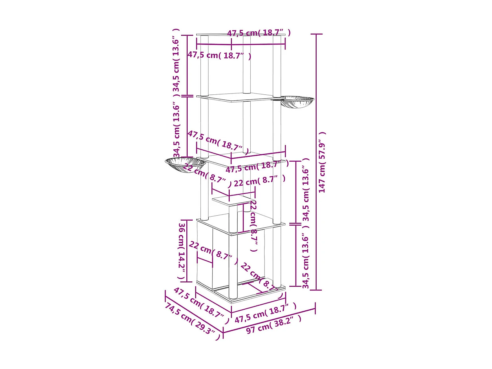 Rascador para gatos con postes de sisal color crema 109,5 cm