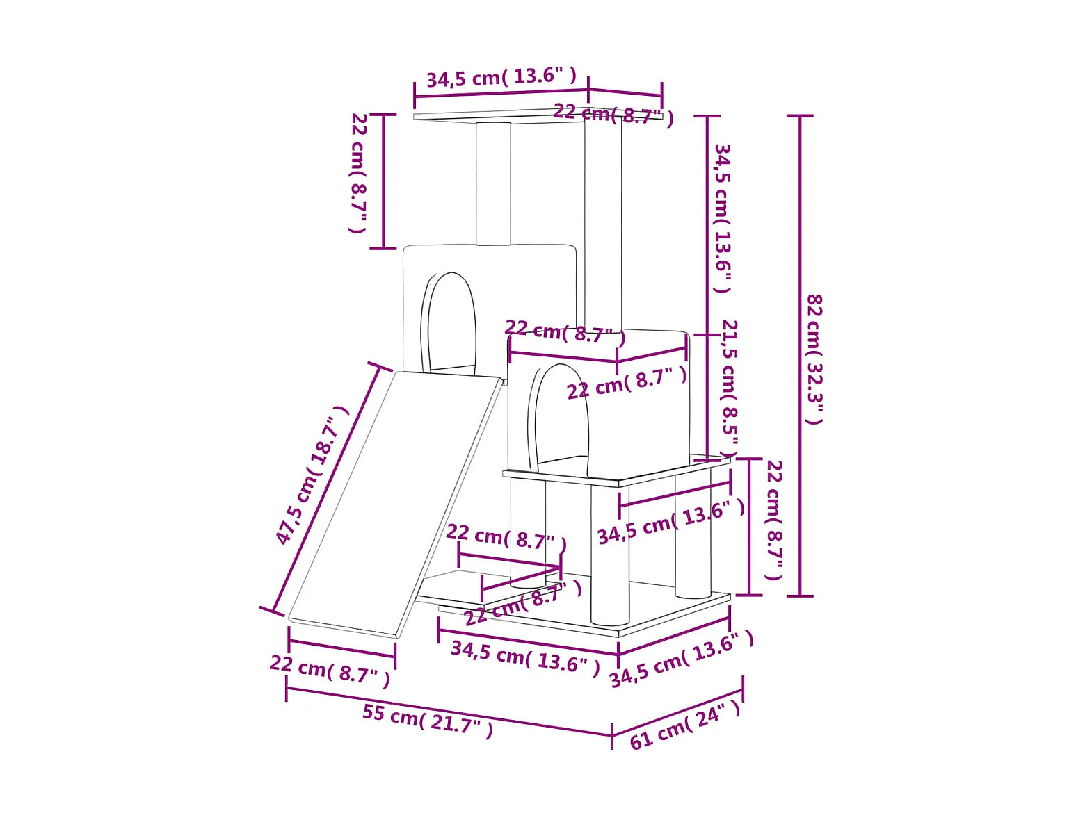 Rascador para gatos con postes de sisal color crema 109,5 cm
