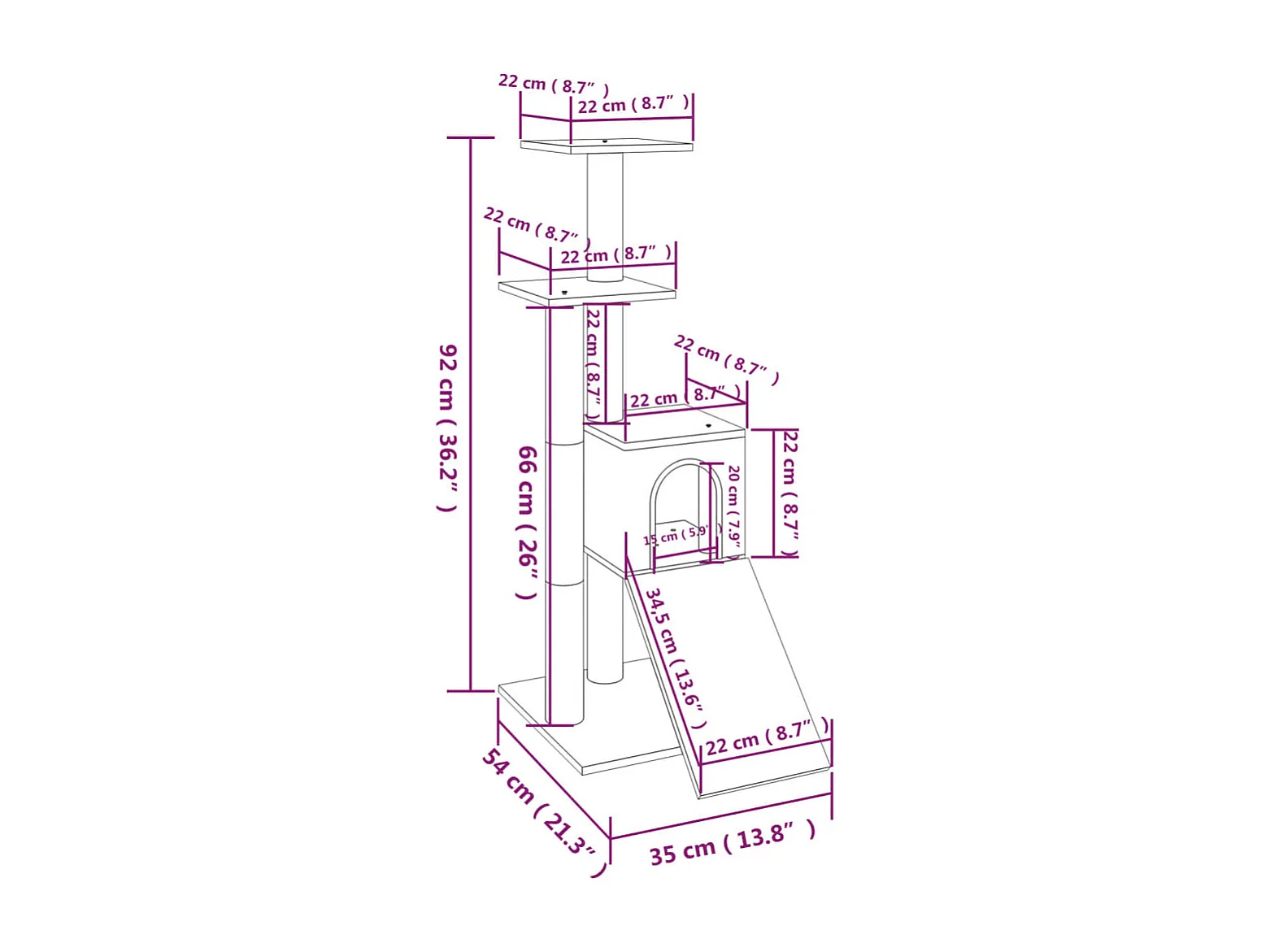 Rascador para gatos con postes de sisal color crema 92 cm ES544016