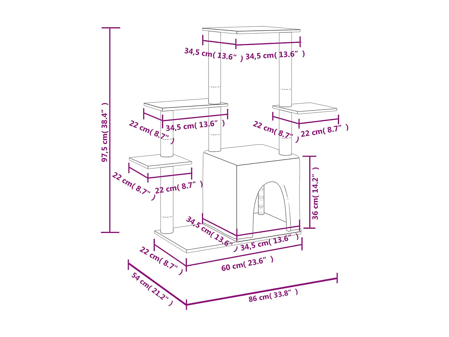 Rascador para gatos con postes de sisal color crema 96,5 cm