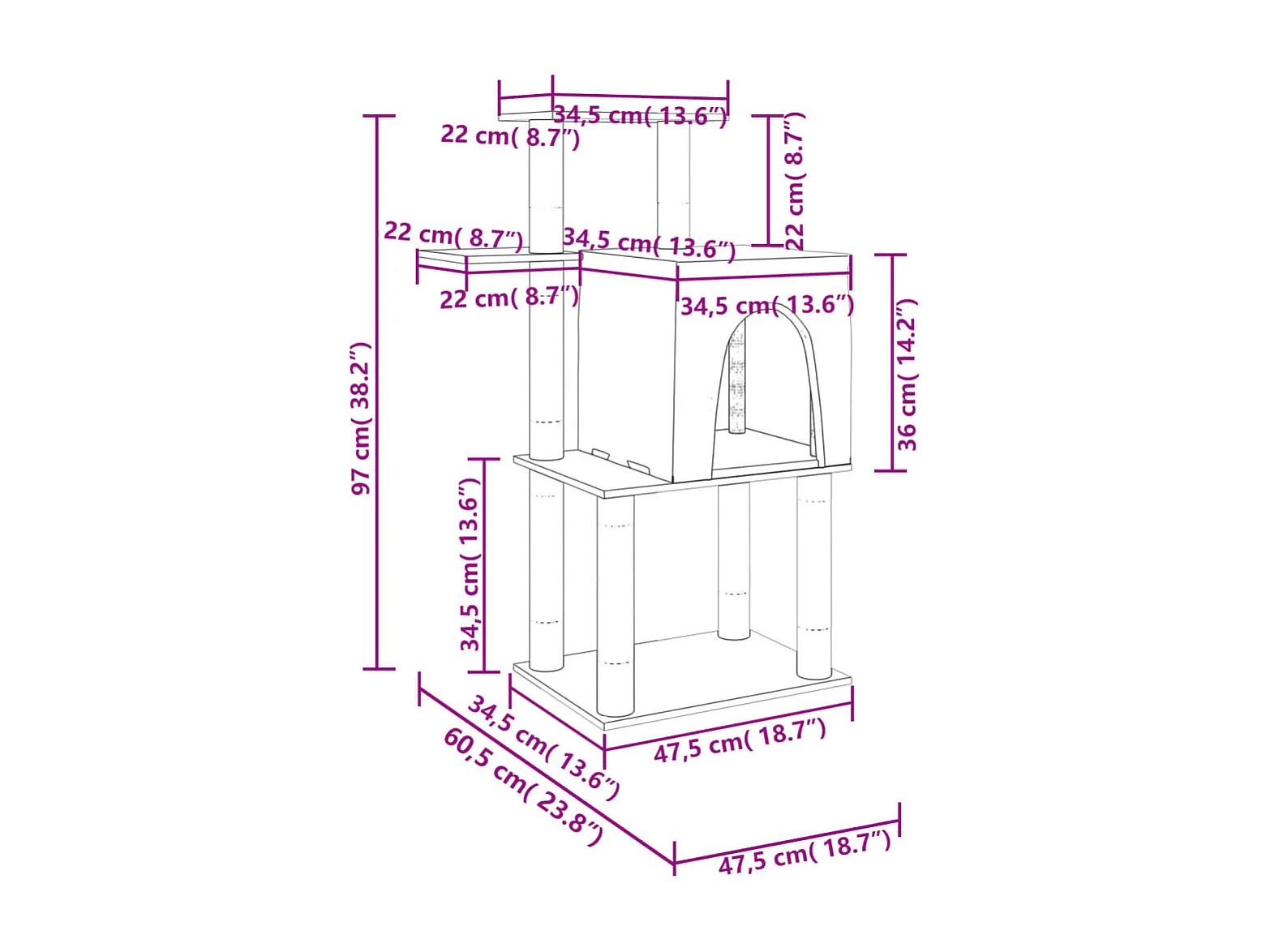 Rascador para gatos con postes de sisal color crema 109,5 cm