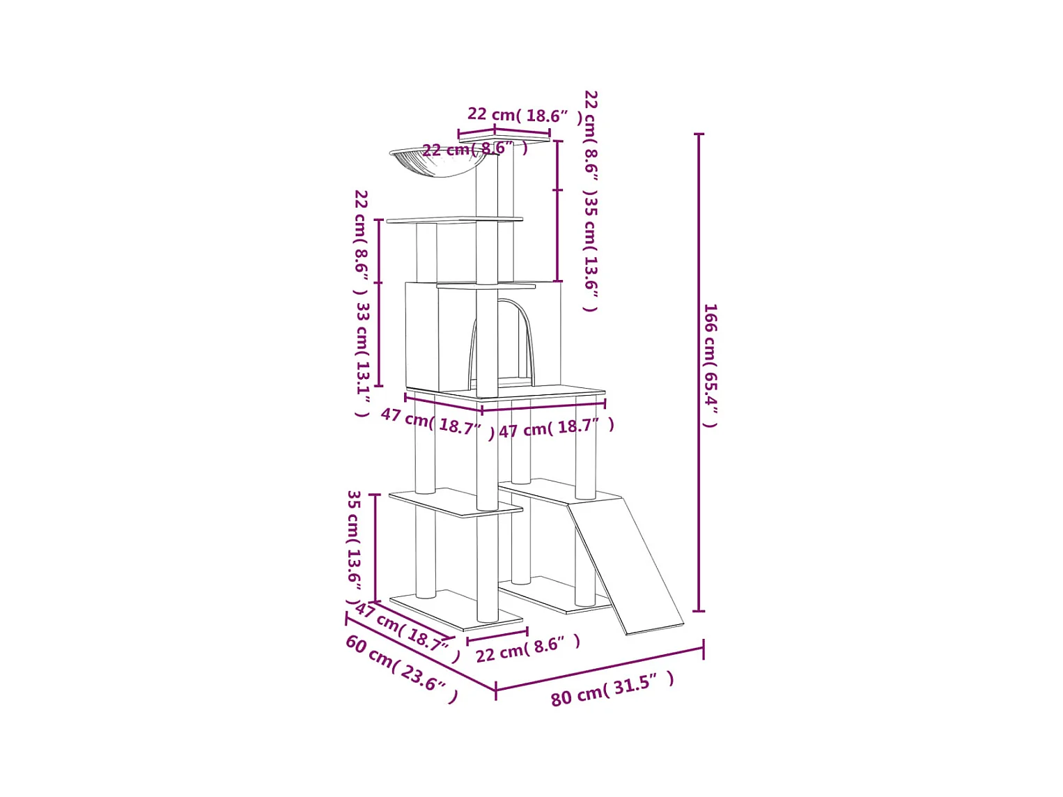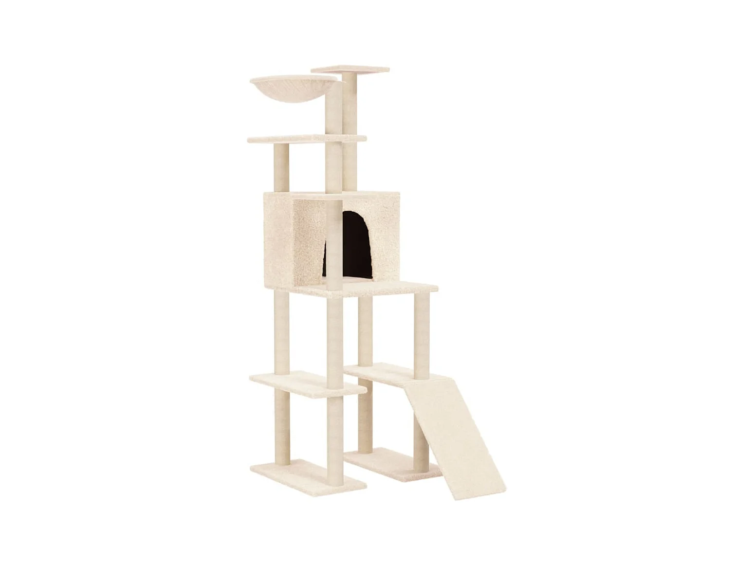 Sindar Rascador para gatos con postes de sisal crema 166 cm