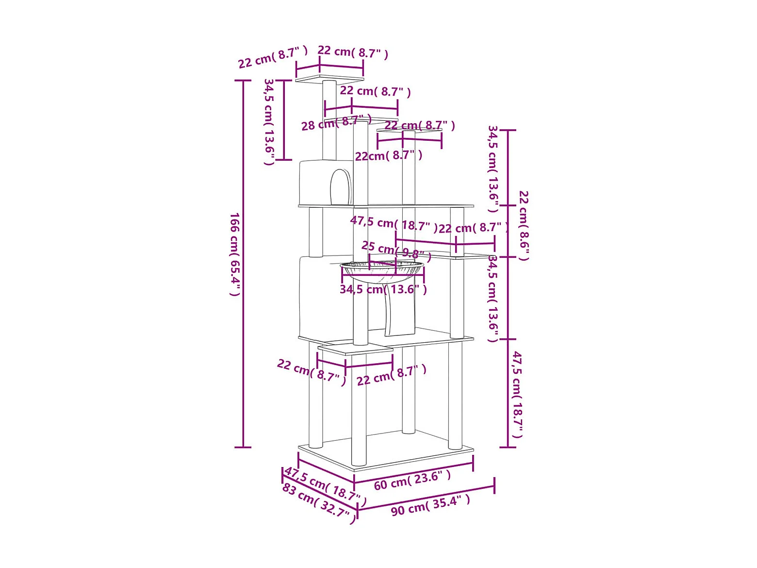 Rascador para gatos con postes de sisal color crema 94,5 cm
