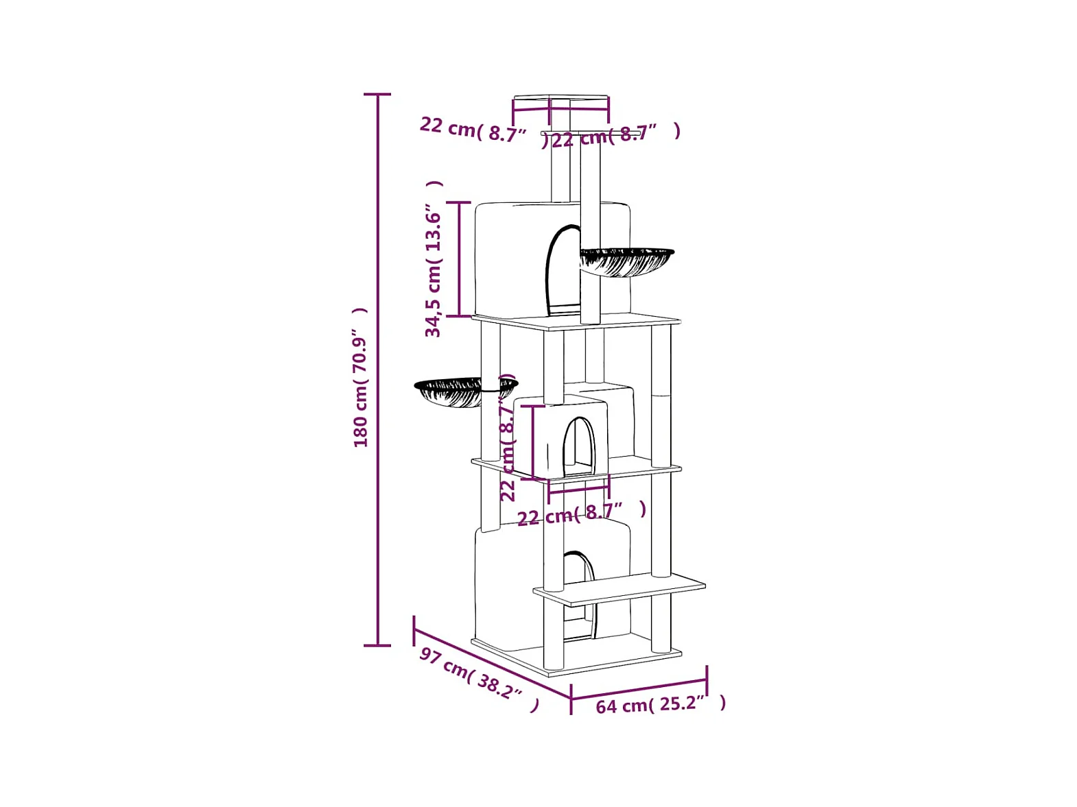 Rascador para gatos con postes de sisal crema 180 cm ES761525