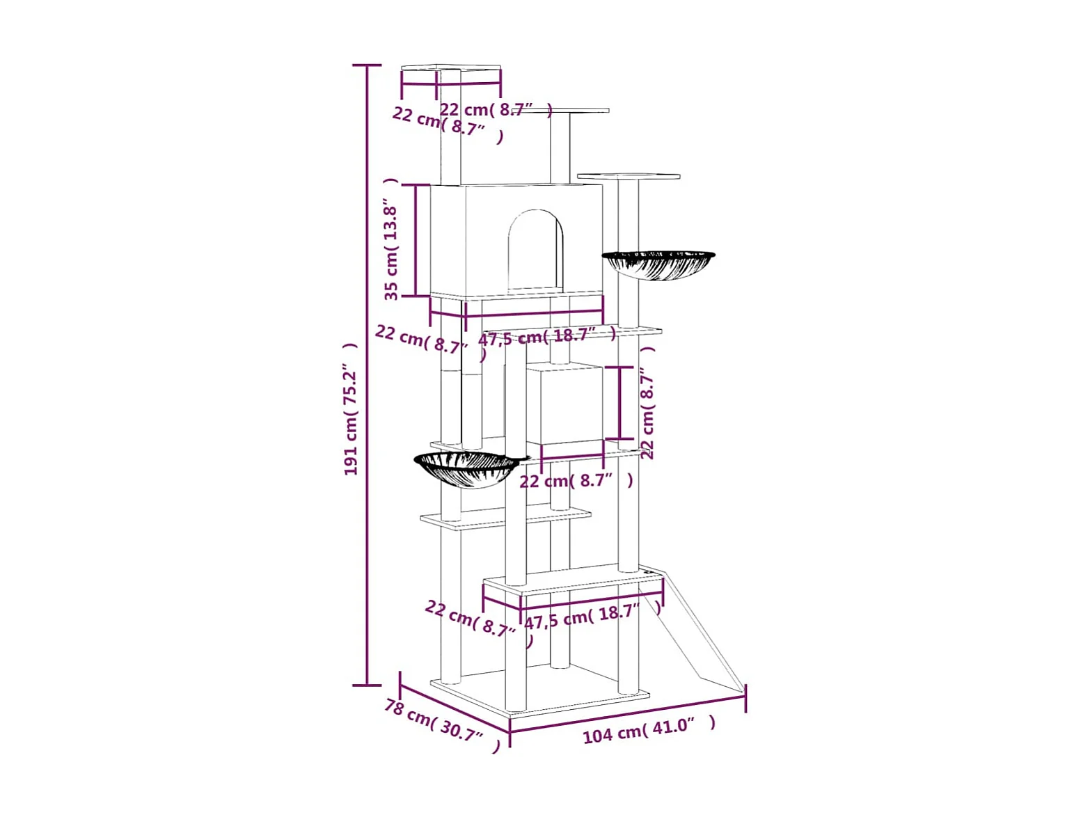 Rascador para gatos con postes de sisal crema 191 cm