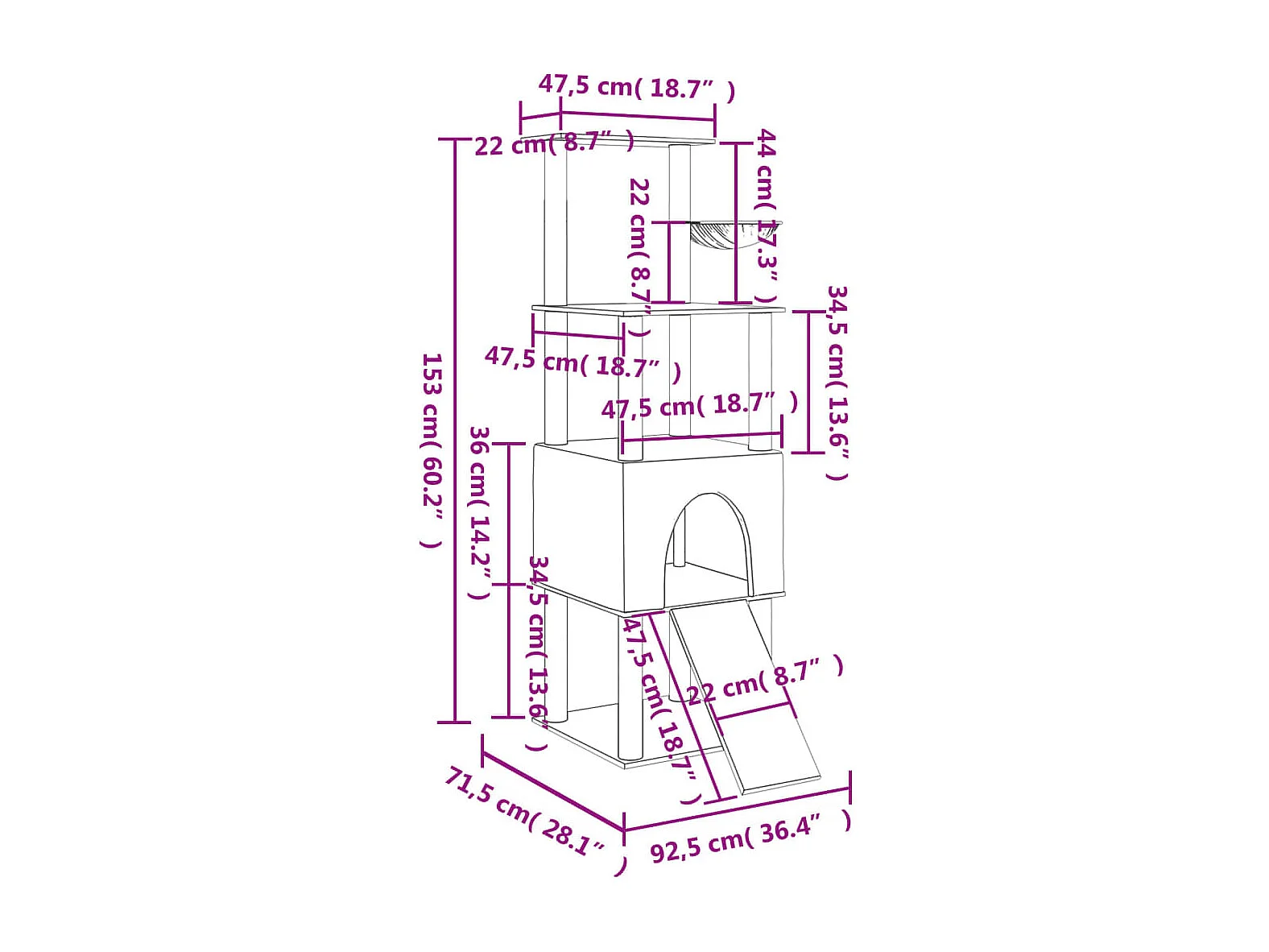 Rascador para gatos con postes de sisal gris claro 153 cm