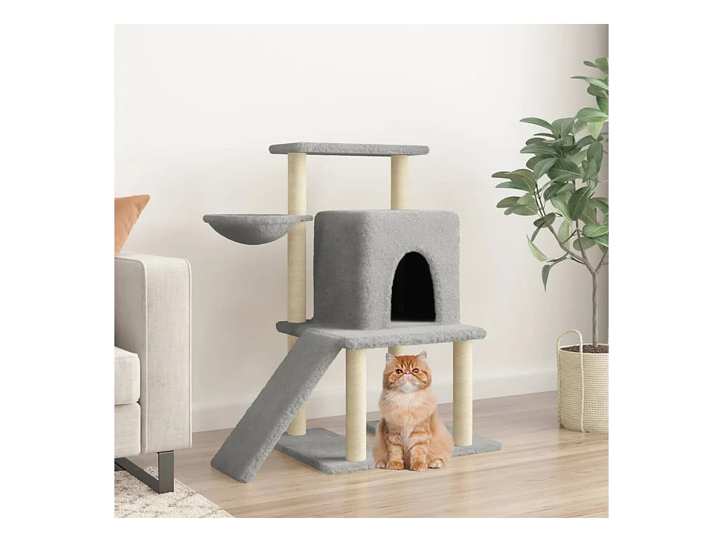 Rascador para gatos con postes de sisal gris claro 107,5 cm ES274693