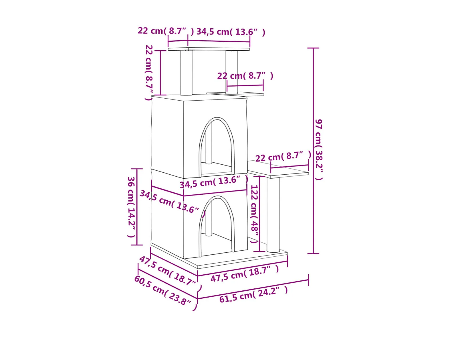 Rascador para gatos con postes de sisal gris oscuro 97 cm