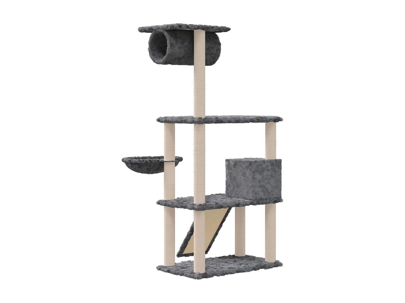 Rascador para gatos con postes de sisal gris oscuro 131 cm
