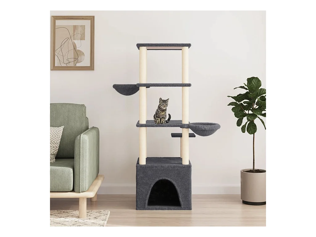 Rascador para gatos con postes de sisal gris oscuro 147 cm ES147061