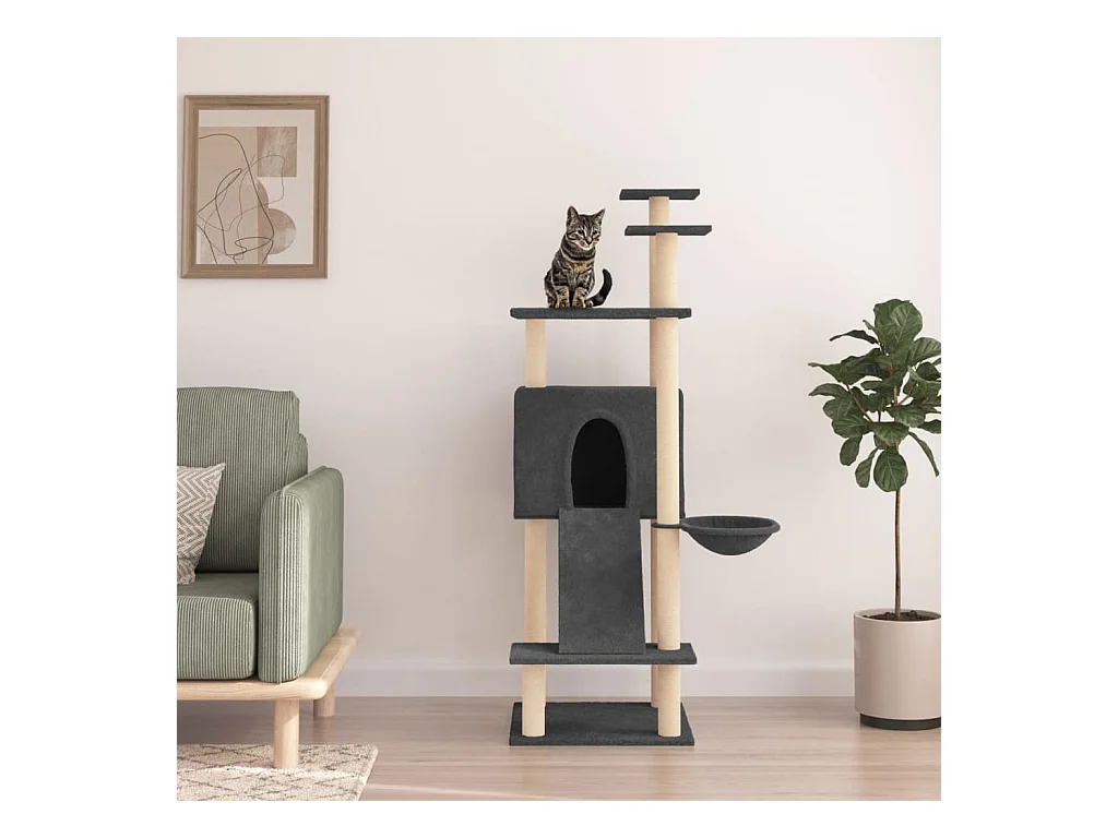 Rémi-Roland Rascador para gatos con postes de sisal gris oscuro 153 cm