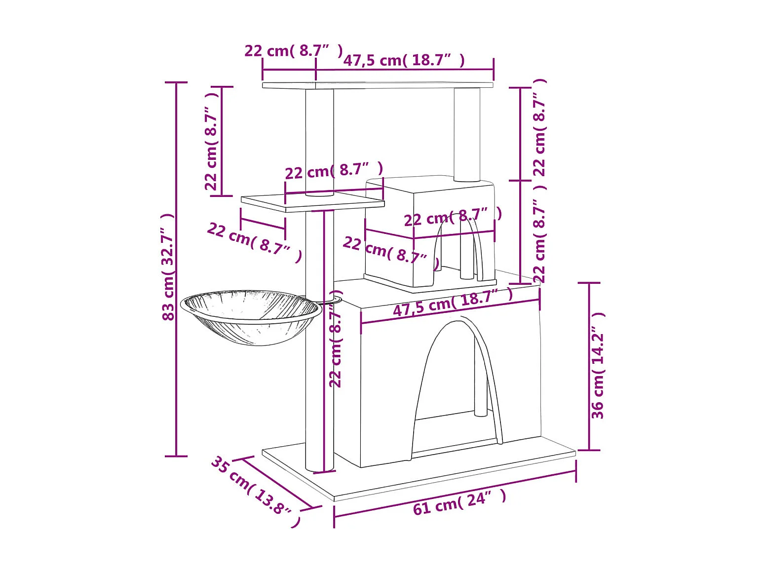 Rascador para gatos con postes de sisal gris oscuro 83 cm