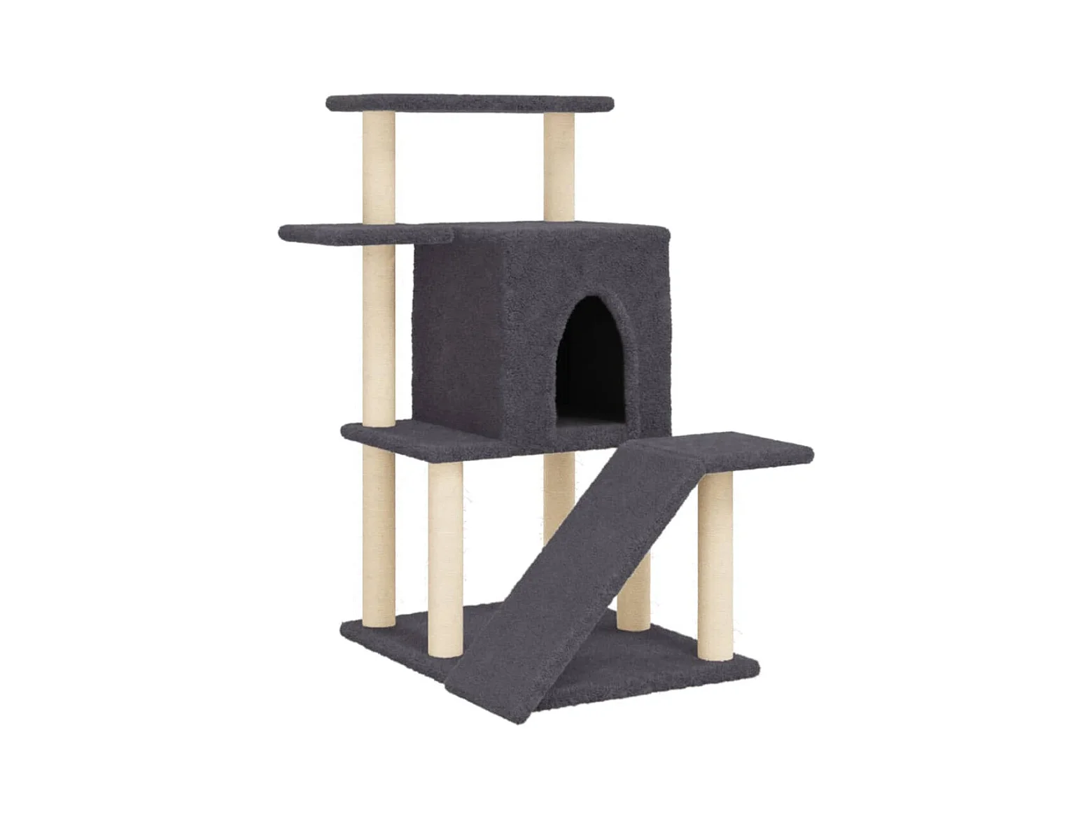 Rascador para gatos con postes de sisal gris oscuro 97 cm ES236559