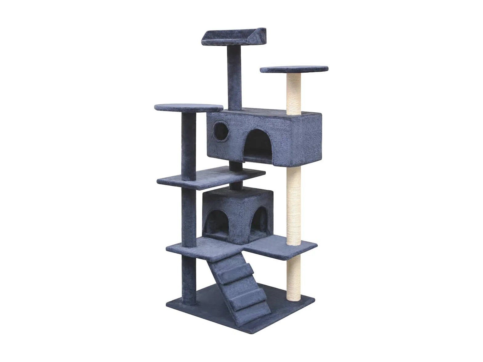 Rascador para gatos con poste de sisal 138 cm azul oscuro