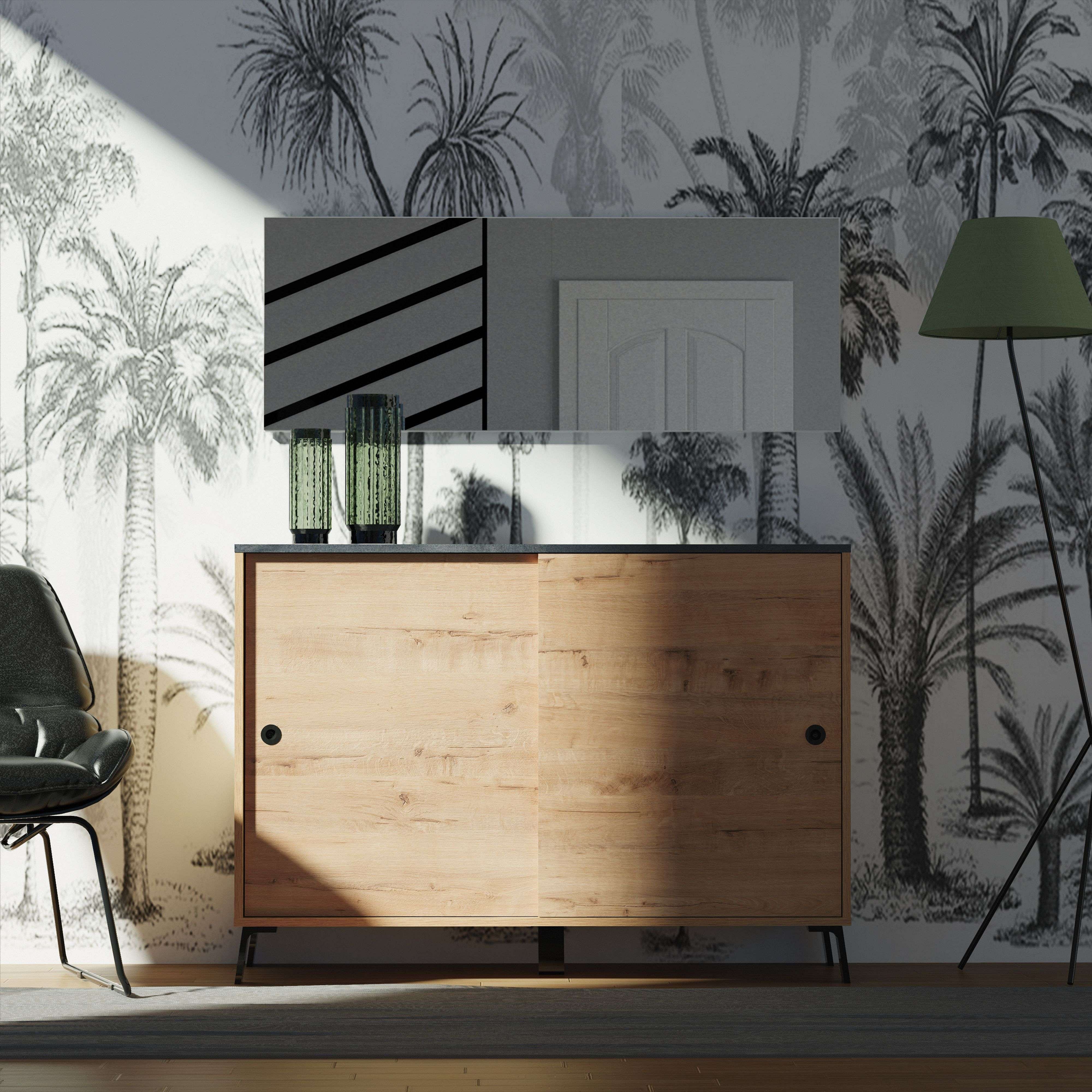 Recibidor Con Espejo Terpi Moderno Roble Gold y Mármol