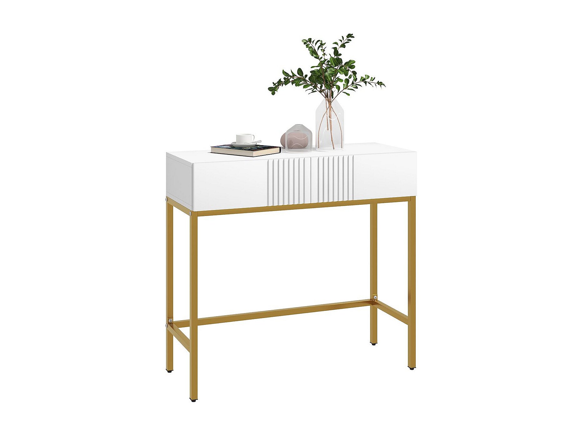 Consola de 2 cajones con patas doradas mate 103x80 cm