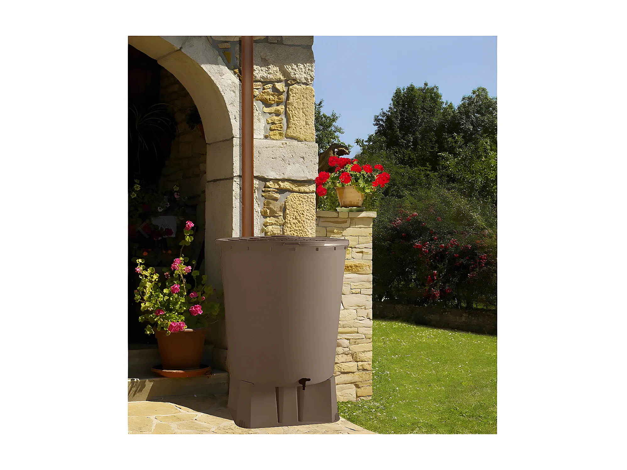 Recuperador de agua "UBUD" con soporte - 200L - Topo