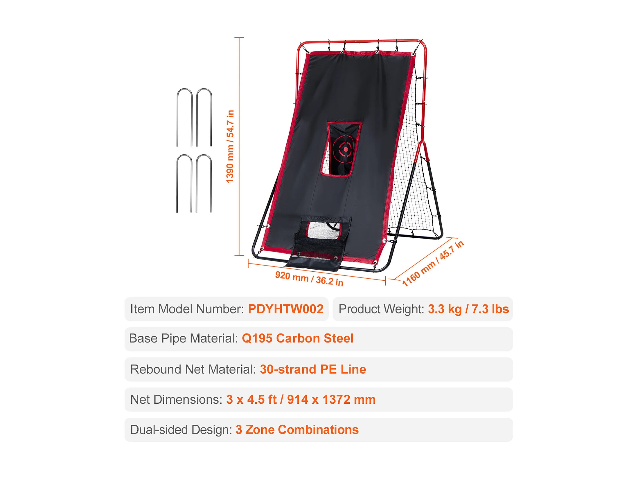 Red de Rebote SucceBuy para Béisbol y Softbol, 110 x 140 cm, 2 en 1, para el Entrenamiento en Campo y Lanzamiento