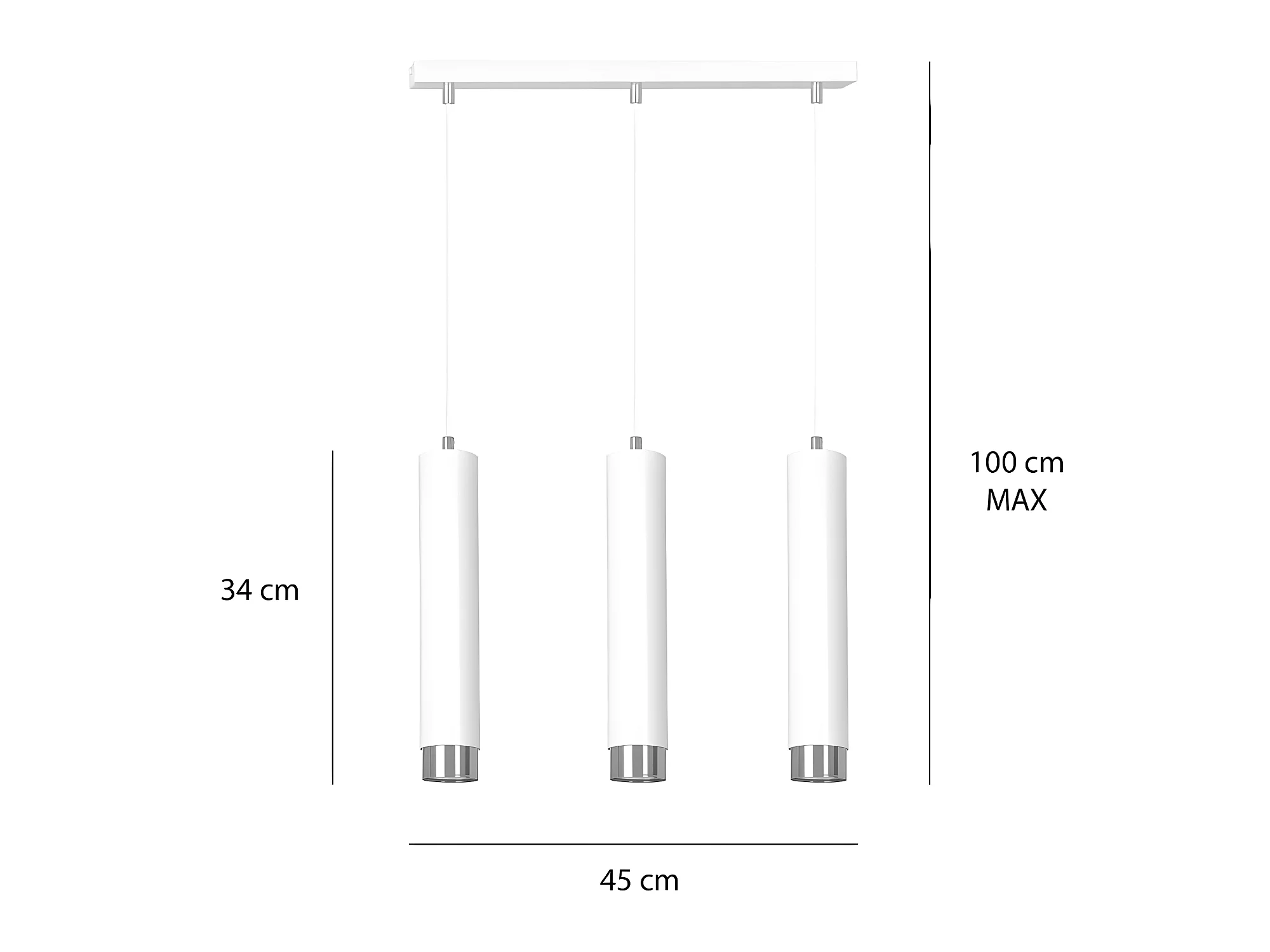 Regleta colgante moderno Mura con 3 pantallas cilíndricas blanco y cromo 3xGU10