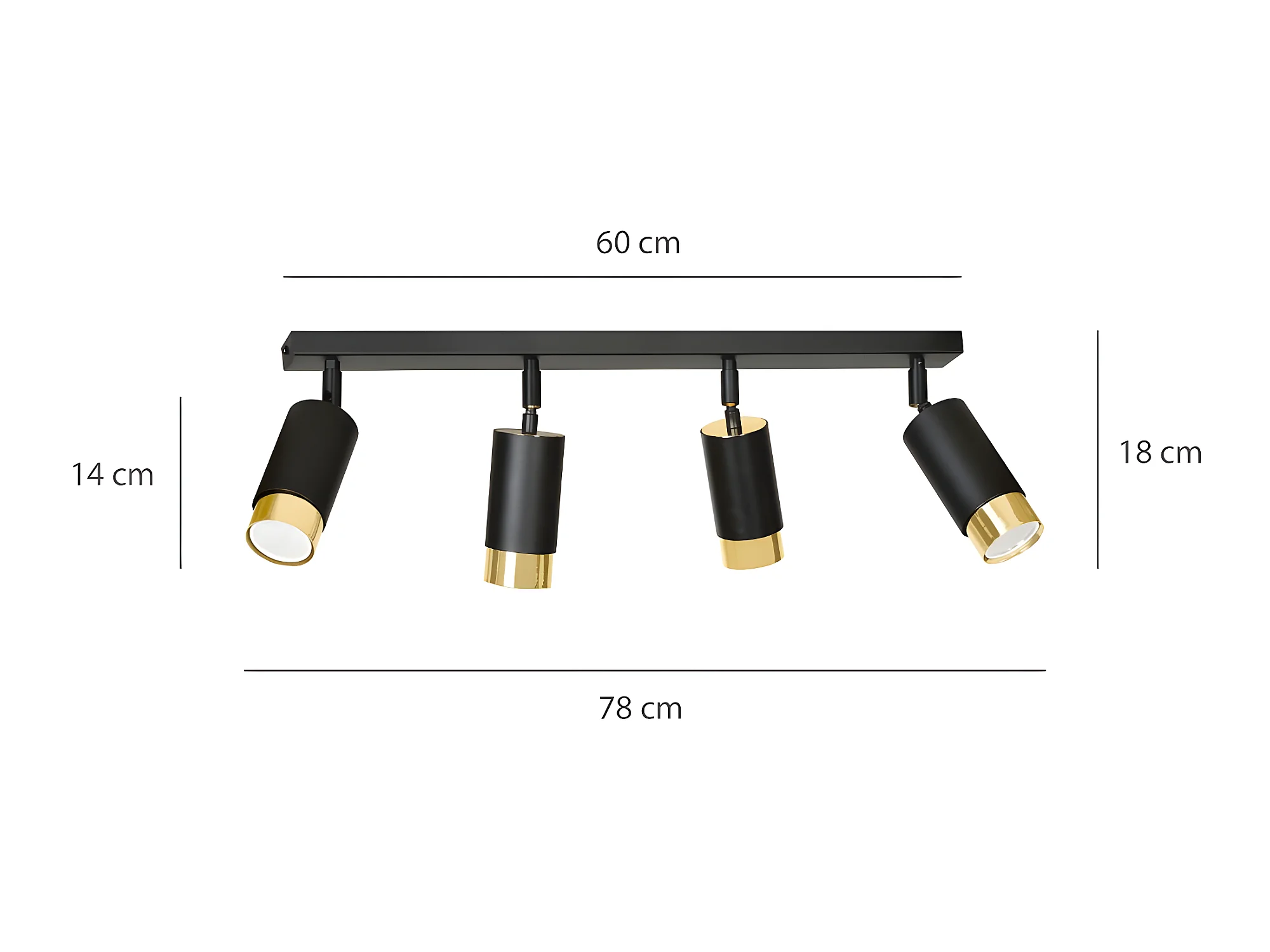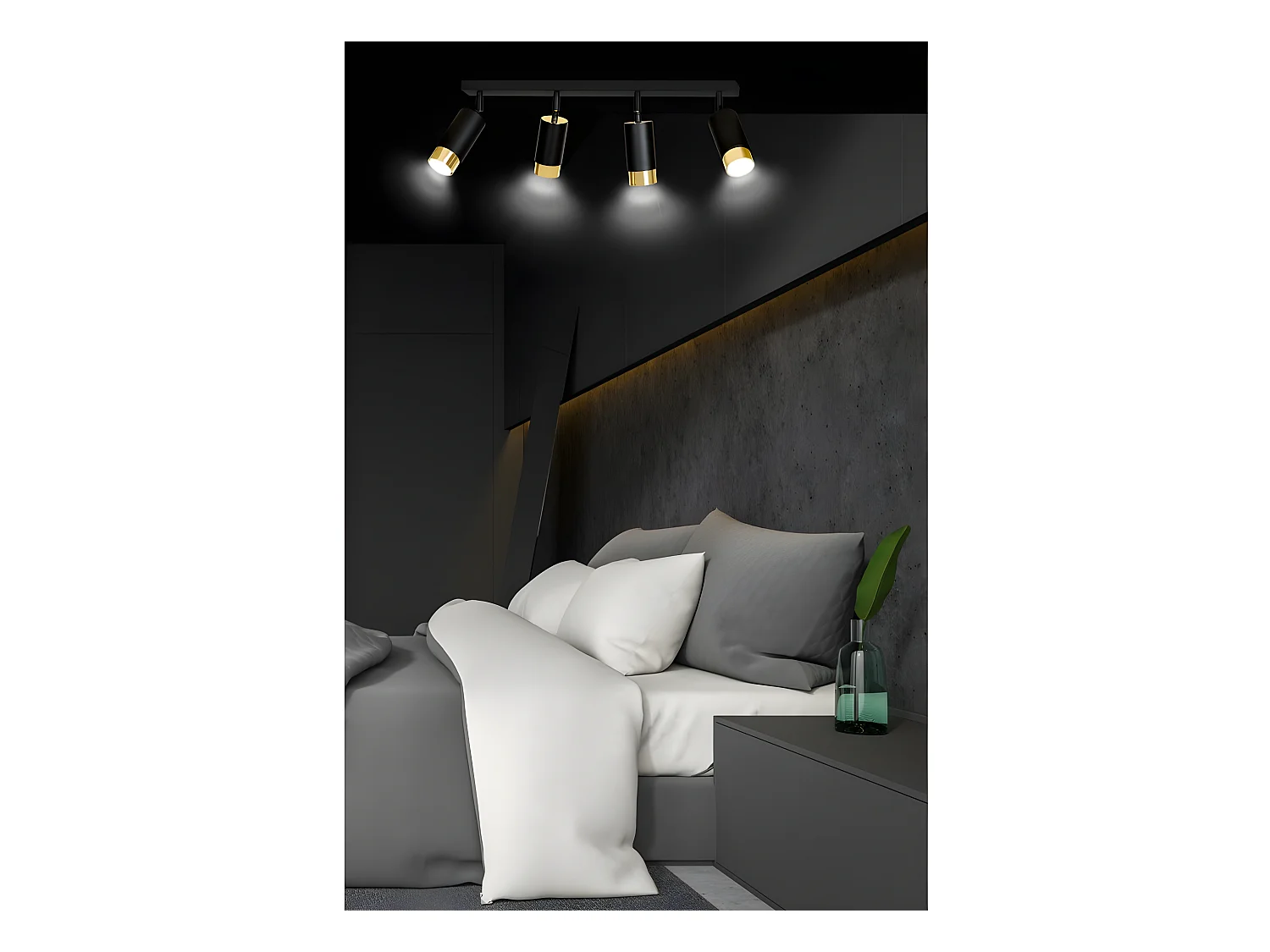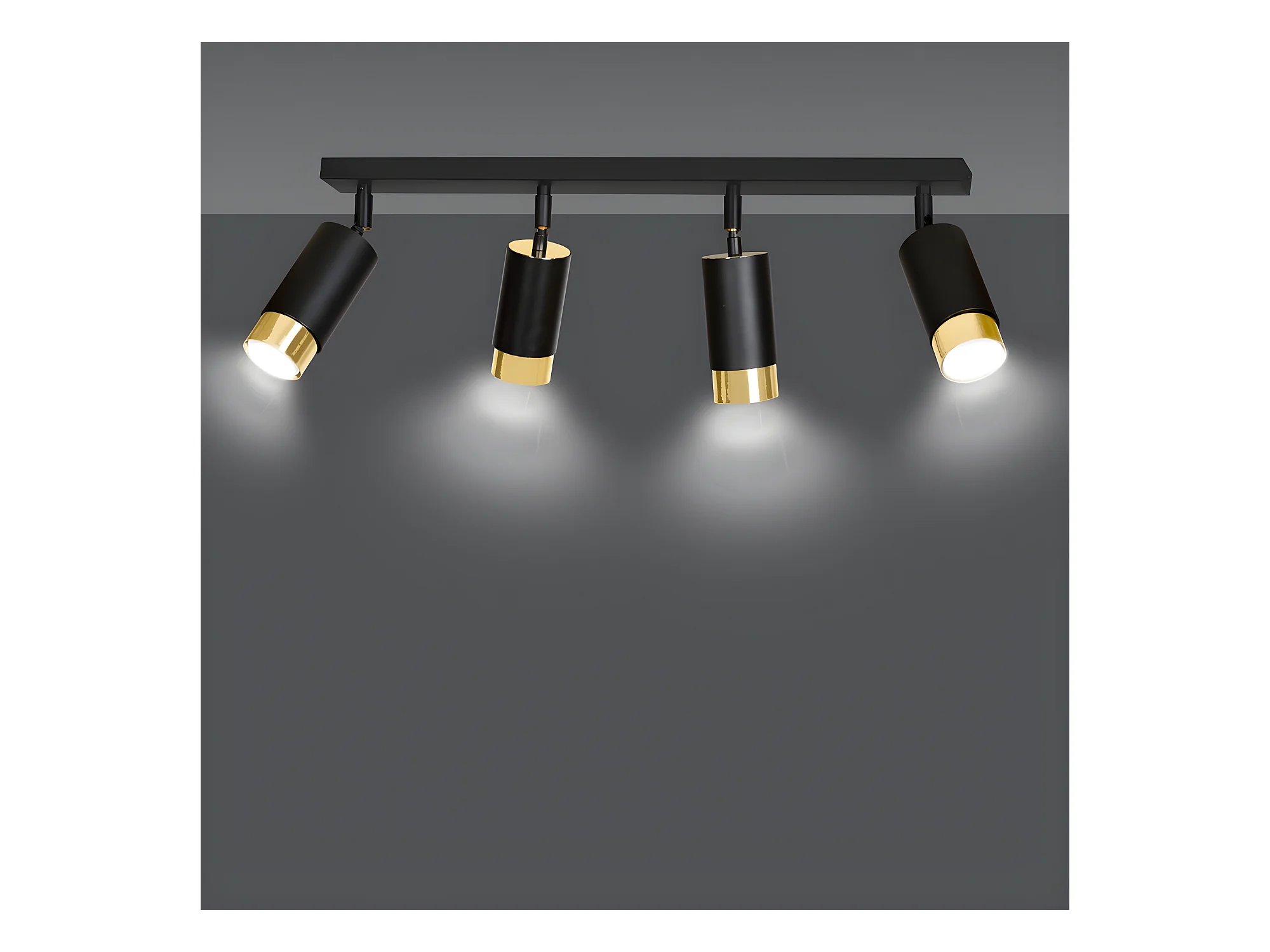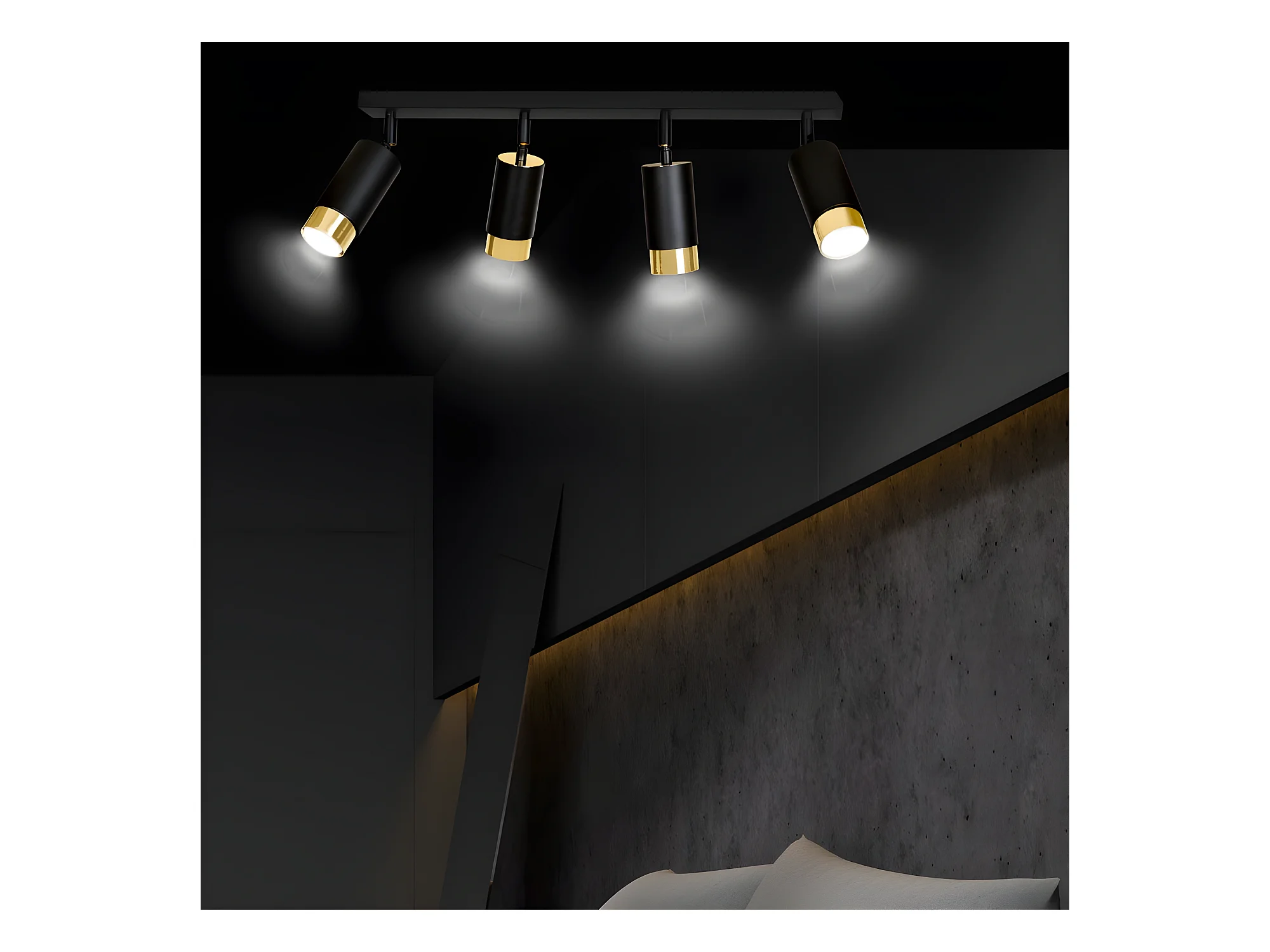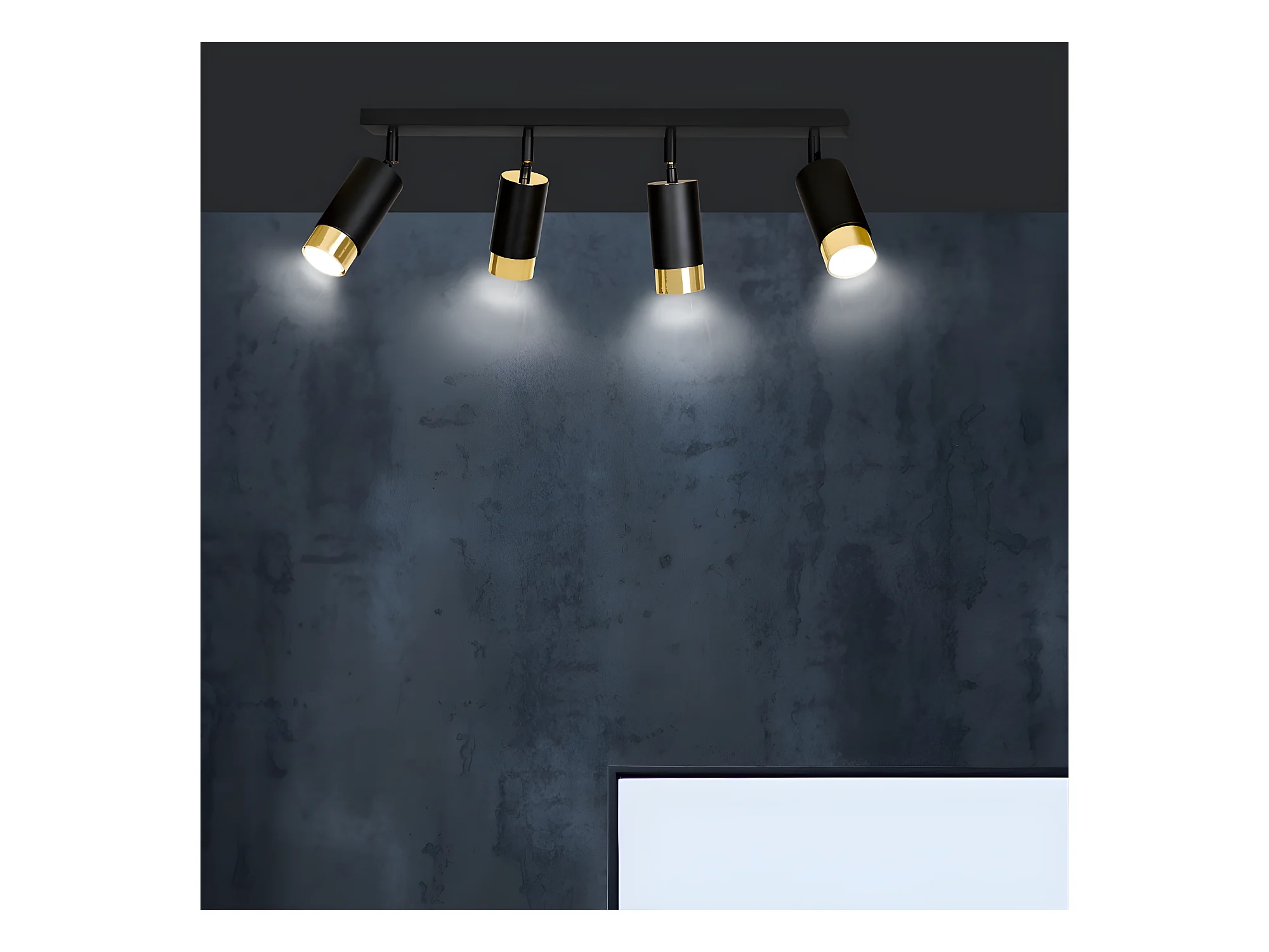Regleta de techo Mura con 4 focos orientables en negro y dorado 4xGU10