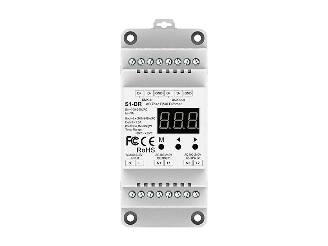 Regulador TRIAC DMX & RDM 2 Canales para Carril DIN
