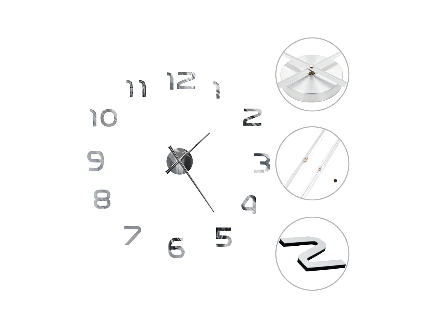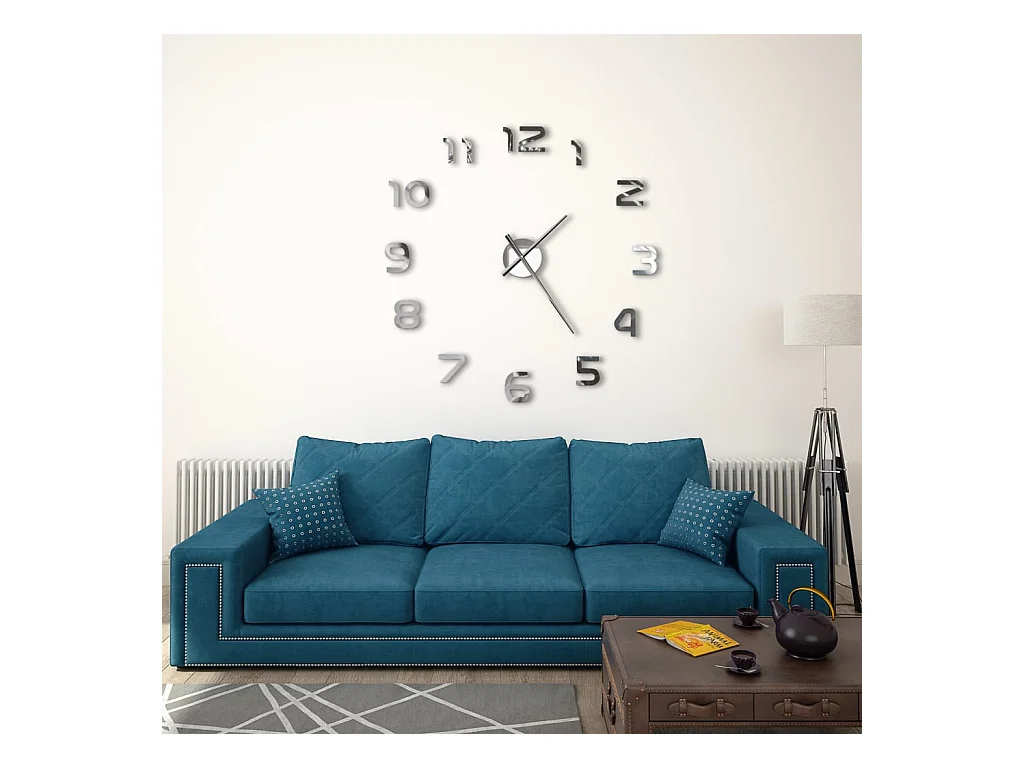 Reloj de pared 3D Diseño moderno 100 cm XXL Plata