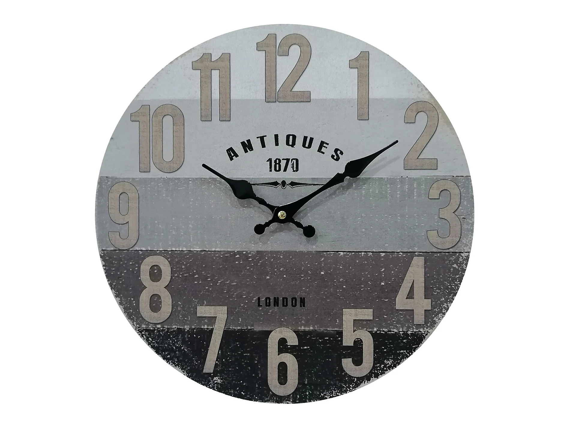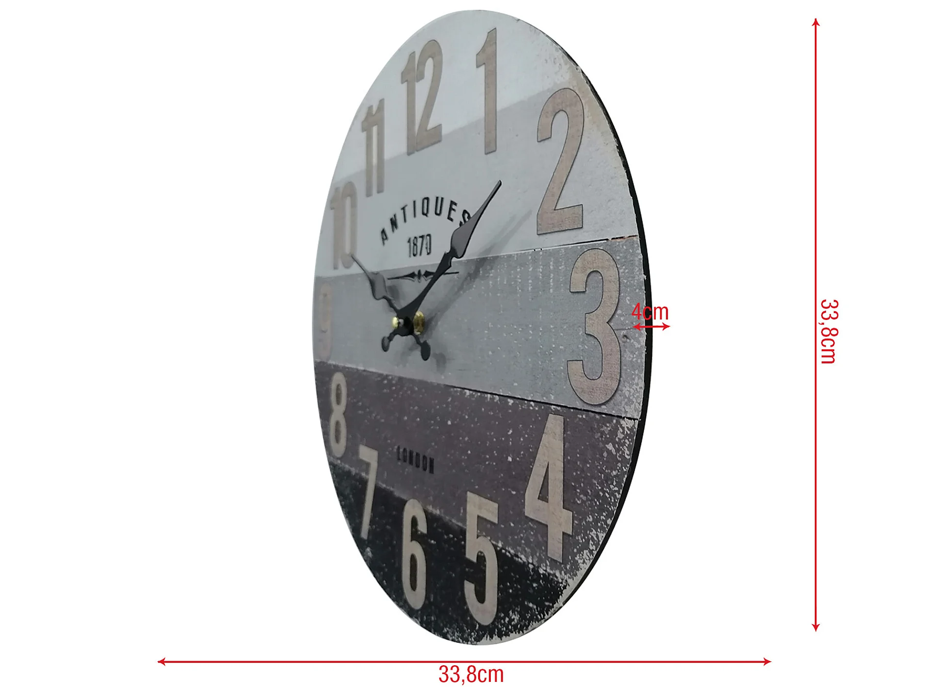 Reloj de Pared Shabby Relojes Vintage Gris Negro Marrón Mdf
