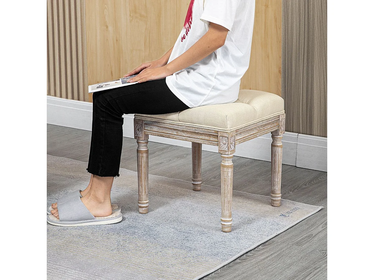 Reposapiés Castillo Homcom capitoné acolchado beige 43x40x40 cm