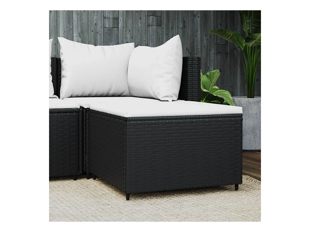 Reposapiés de jardín con cojín ratán sintético negro