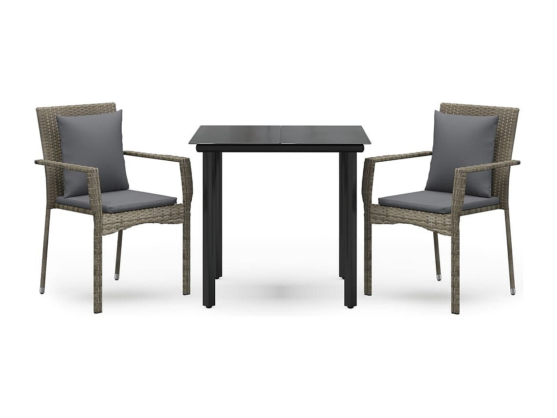 Chelan Set comedor jardín 3 pzas y cojines ratán sintético negro gris